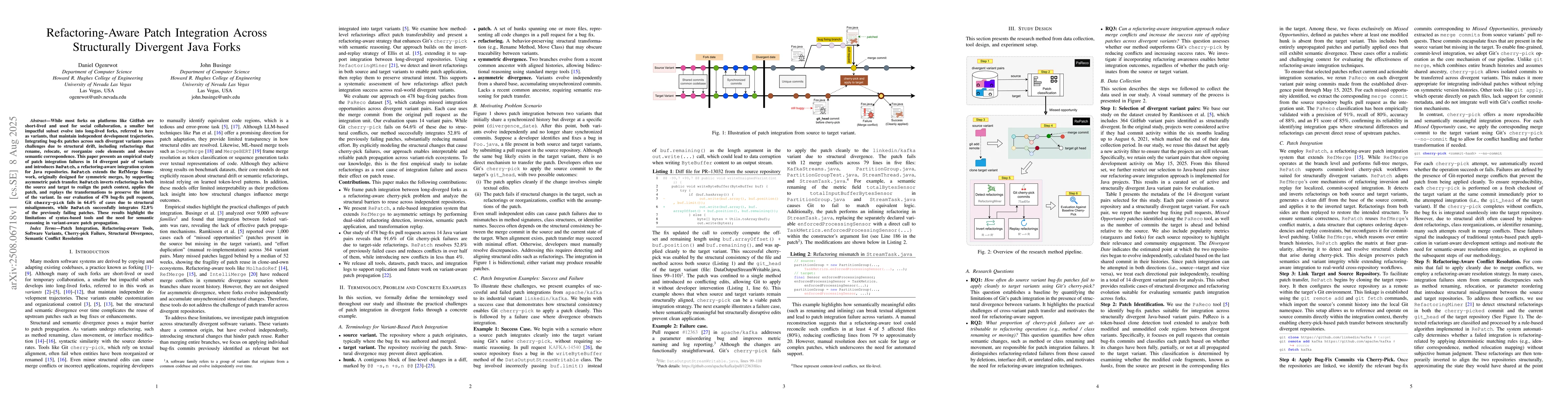 While most forks on platforms like GitHub are short-lived and used for social collaboration, a smaller but impactful subset evolve into long-lived forks, referred to here as variants, that maintain independent development trajectories. Integrating bug-fix patches across such divergent variants poses challenges due to structural drift, including refactorings that rename, relocate, or reorganize code elements and obscure semantic correspondence. This paper presents an empirical study of patch integration failures in 14 divergent pair of variants and introduces RePatch, a refactoring-aware integration system for Java repositories. RePatch extends the RefMerge framework, originally designed for symmetric merges, by supporting asymmetric patch transfer. RePatch inverts refactorings in both the source and target to realign the patch context, applies the patch, and replays the transformations to preserve the intent of the variant. In our evaluation of 478 bug-fix pull requests, Git cherry-pick fails in 64.4% of cases due to structural misalignments, while RePatch successfully integrates 52.8% of the previously failing patches. These results highlight the limitations of syntax-based tools and the need for semantic reasoning in variant-aware patch propagation.