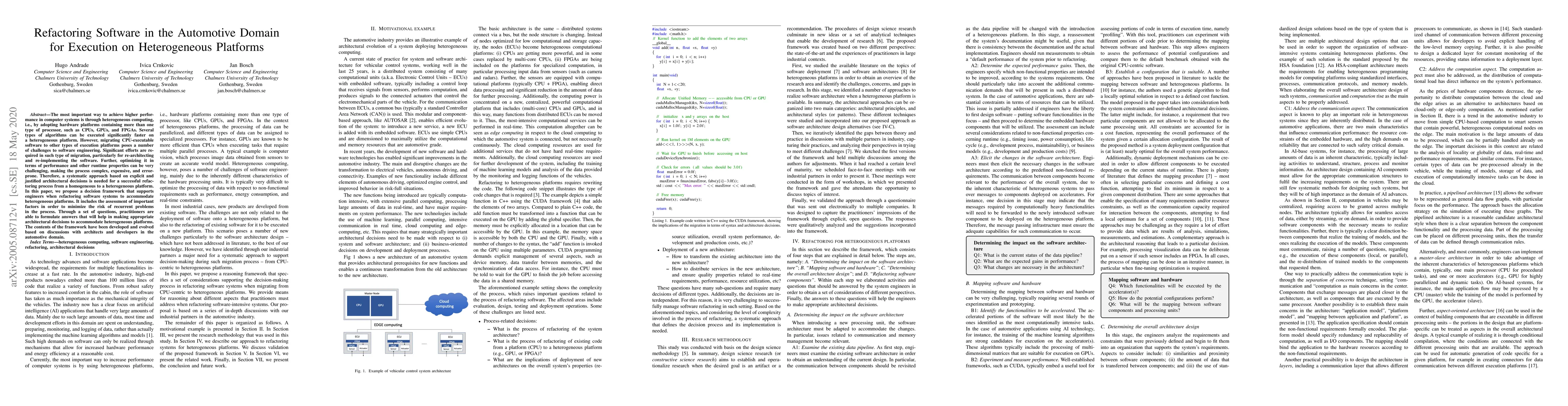 This paper proposes a decision framework to assist software engineers in refactoring automotive software for execution on heterogeneous platforms, addressing challenges in performance optimization and migration. The framework includes a set of questions to guide architectural decisions, minimizing risks and ensuring successful adaptation.