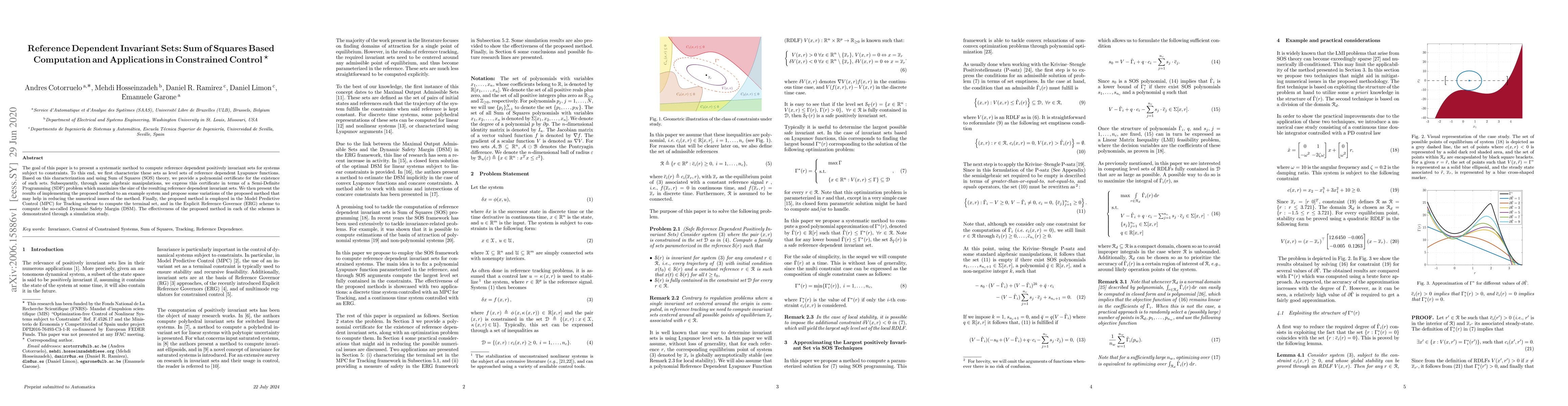Researchers develop a method to compute reference-dependent invariant sets for systems subject to constraints using Sum of Squares theory, enabling applications in Model Predictive Control and Explicit Reference Governor schemes.