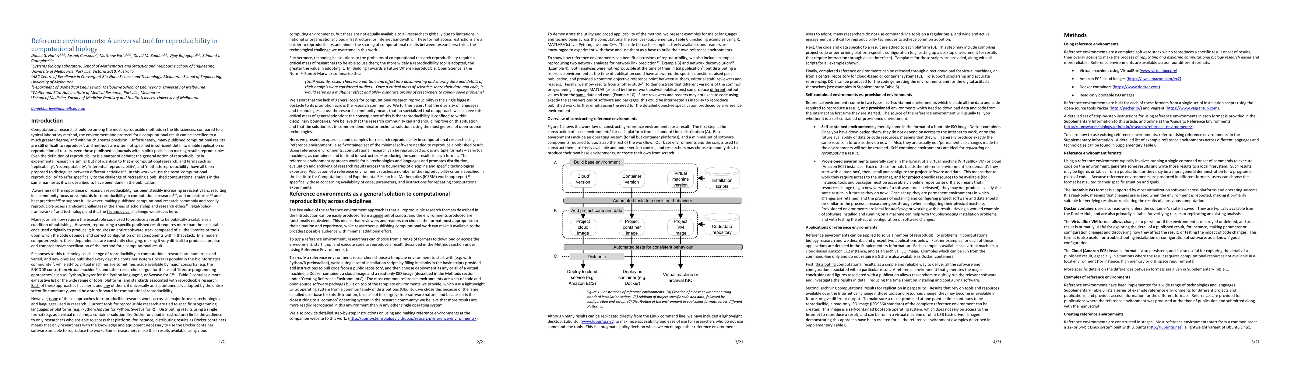 This paper introduces a universal toolset for enhancing reproducibility in computational biology, addressing the limitations of existing technologies that are language- or platform-specific. The proposed approach aims to decouple computational methods from their implementation, promoting open science and facilitating the replication and recomputation of results across diverse programming languages and environments.