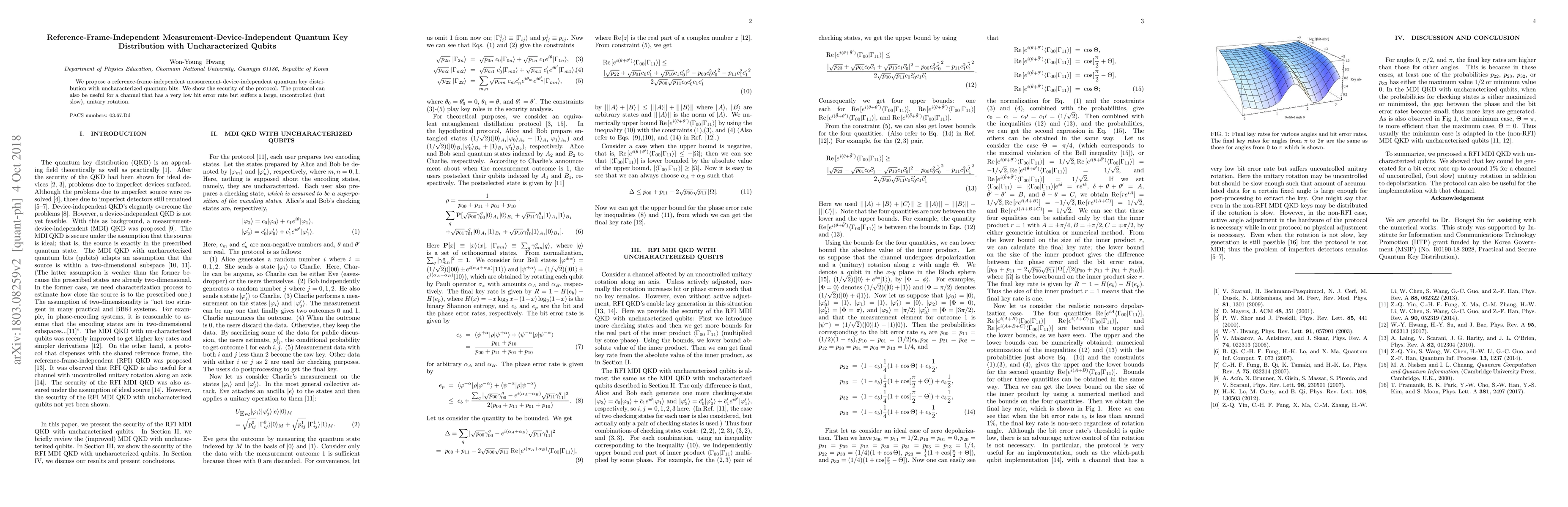 This paper proposes a secure, reference-frame-independent quantum key distribution protocol that does not rely on detailed knowledge of the measurement devices and can handle uncharacterized quantum bits. The protocol ensures security even in channels with low bit error rates and significant, slow, uncontrolled unitary rotations.
