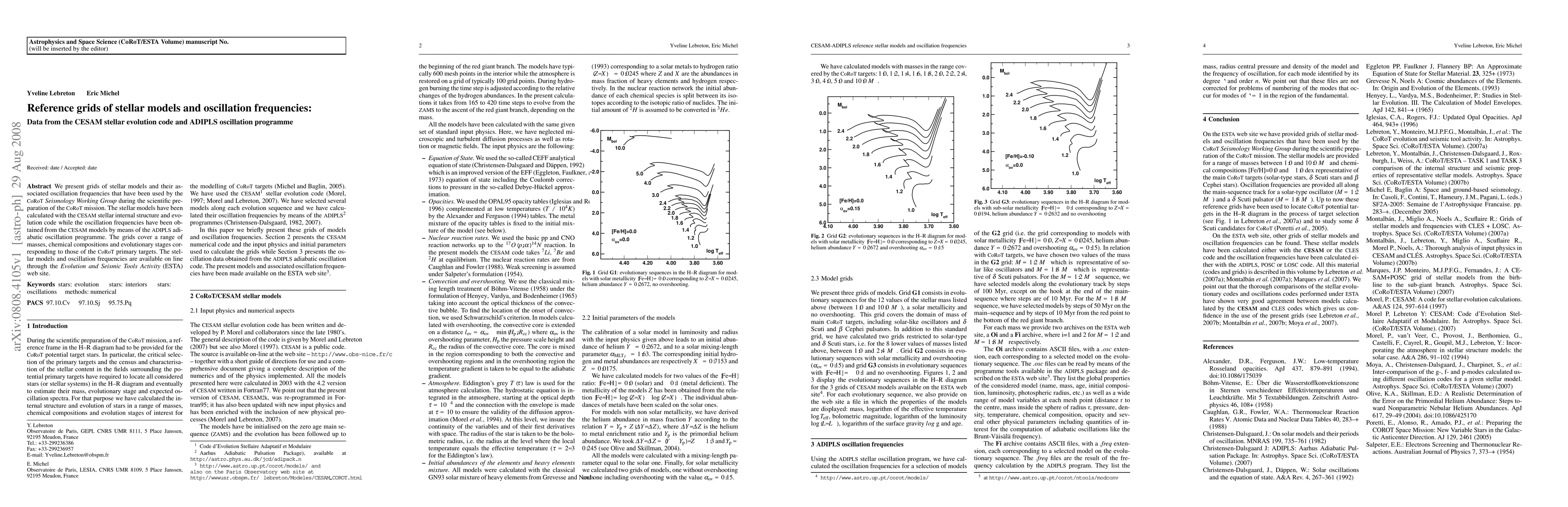 This paper presents grids of stellar models and their oscillation frequencies generated using the CESAM code and ADIPLS programme, crucial for CoRoT mission preparations. The data covers various masses, compositions, and evolutionary stages of CoRoT's primary targets and is accessible online via the ESTA website.