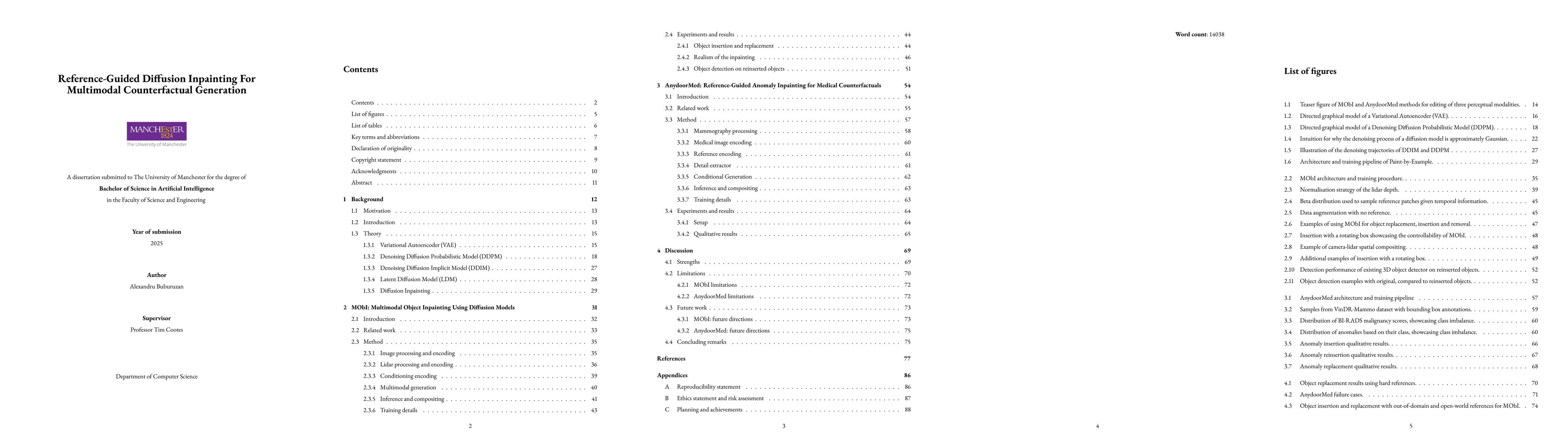 The research introduces MObI for multimodal object inpainting using diffusion models, and AnydoorMed for reference-guided anomaly inpainting in medical imaging, both leveraging 3D bounding box conditioning and cross-modal attention mechanisms.