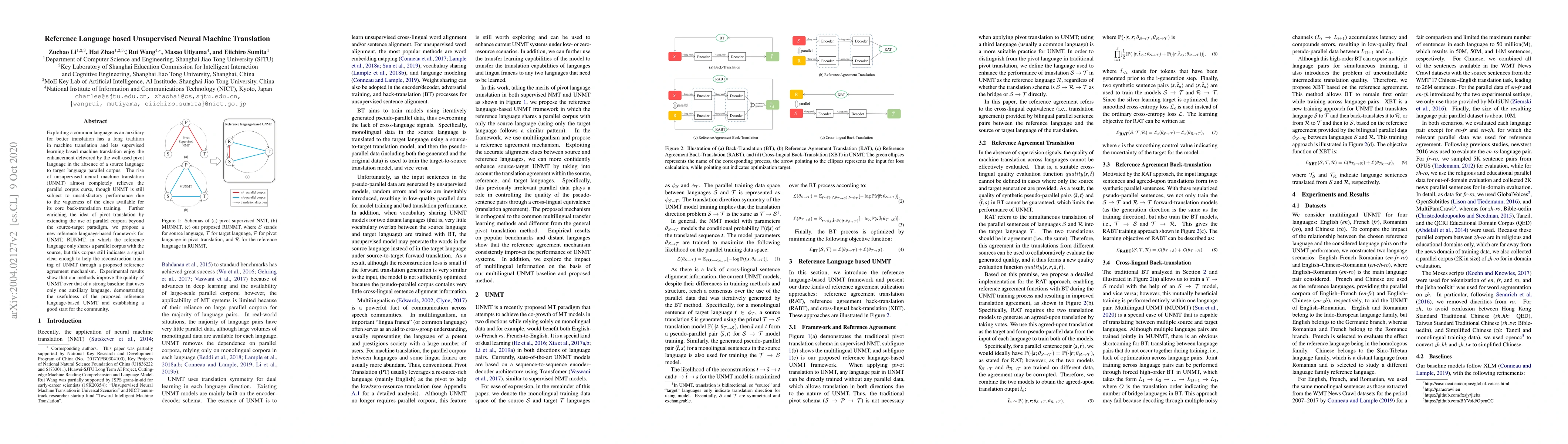 This paper proposes a novel reference language-based framework for unsupervised neural machine translation (RUNMT) that leverages a reference language with a parallel corpus only to the source language to enhance translation quality. Experimental results indicate that this approach improves translation performance compared to a baseline using only one auxiliary language.