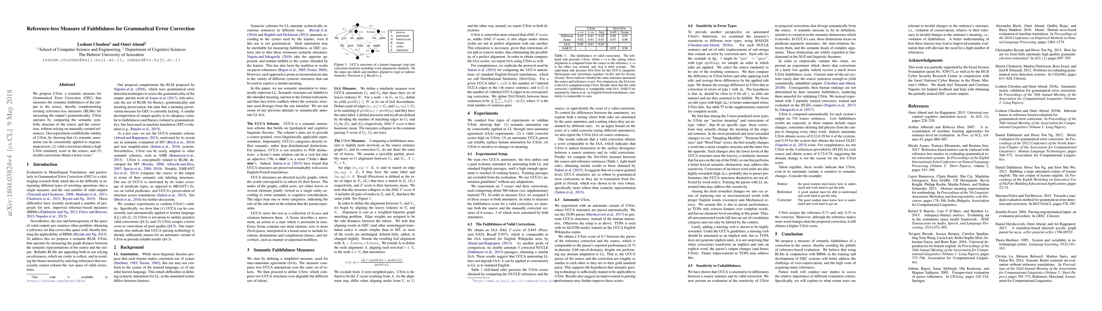 The paper introduces USim, a novel semantic measure for Grammatical Error Correction, which assesses the fidelity of the corrected text to the original meaning without needing reference texts. Experiments demonstrate USim's effectiveness in distinguishing valid from invalid corrections based on semantic similarity.