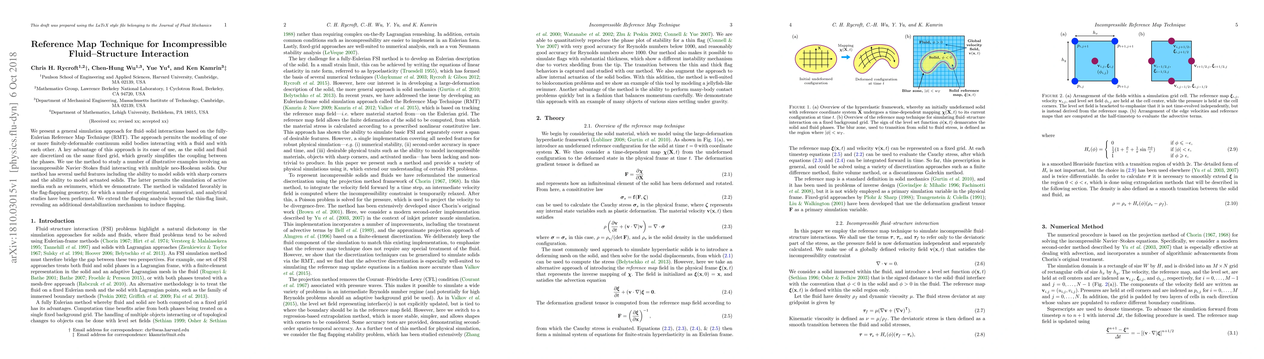 Researchers developed a new simulation approach for fluid-structure interaction using the Reference Map Technique, allowing for easy modeling of complex interactions between fluids and solids. The method was validated with successful results in flag-flapping geometry experiments and revealed an additional destabilization mechanism to induce flapping.