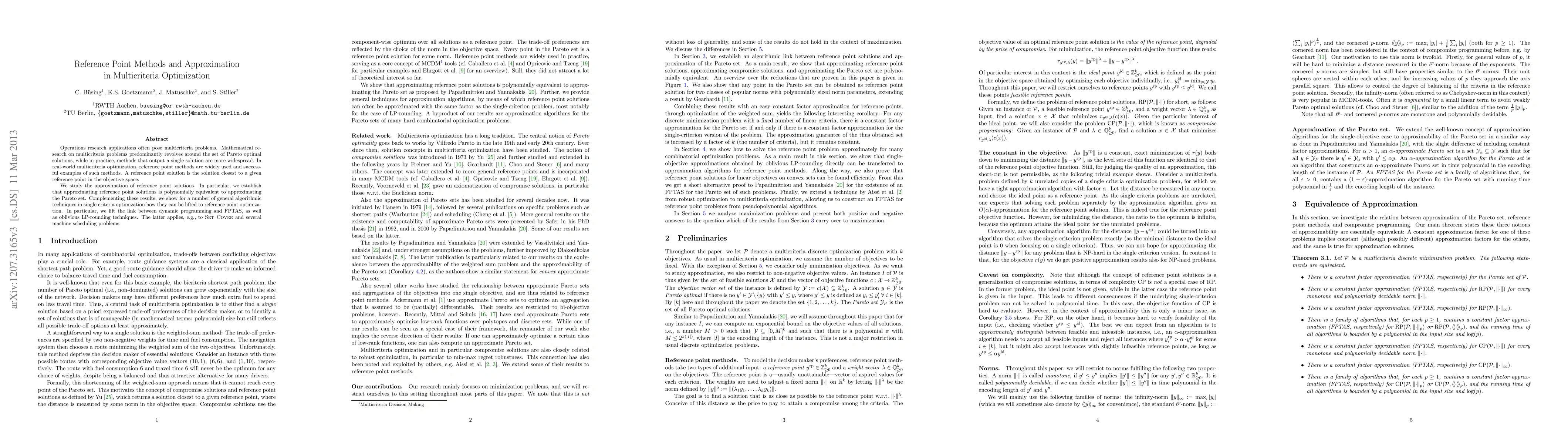 This paper investigates the approximation of solutions derived from reference point methods in multicriteria optimization, demonstrating their polynomial equivalence to approximating the Pareto set. It also explores how general single-criteria optimization techniques, such as dynamic programming and LP-rounding, can be adapted for reference point optimization, with applications to problems like Set Cover and machine scheduling.