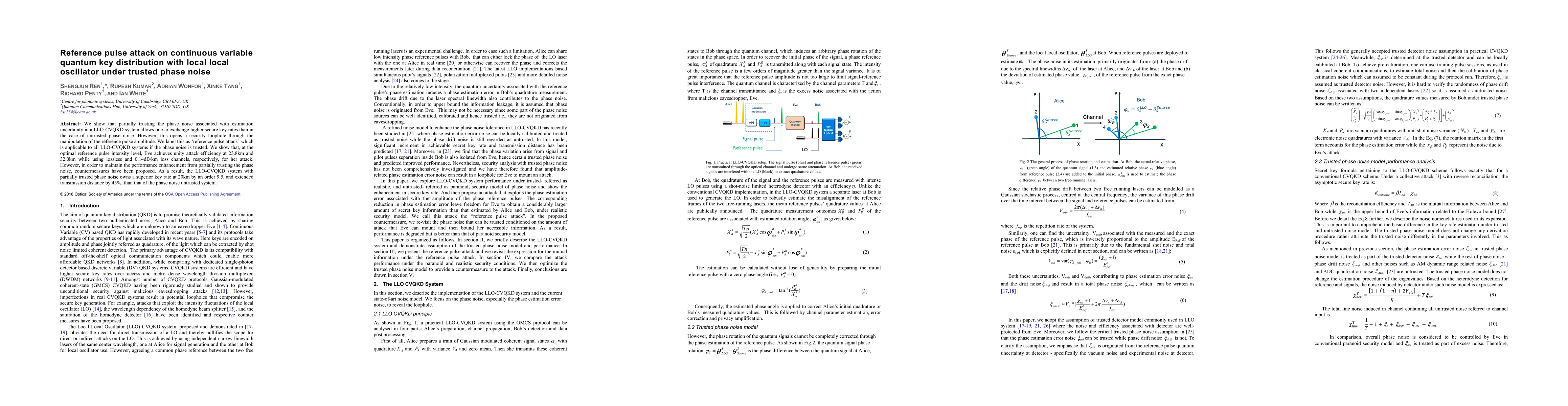 This paper discusses a "reference pulse attack" in continuous-variable quantum key distribution (CVQKD) systems using local local oscillators (LLO), revealing security vulnerabilities when phase noise is partially trusted. Countermeasures are proposed to enhance key rates and extend transmission distances while mitigating the attack.