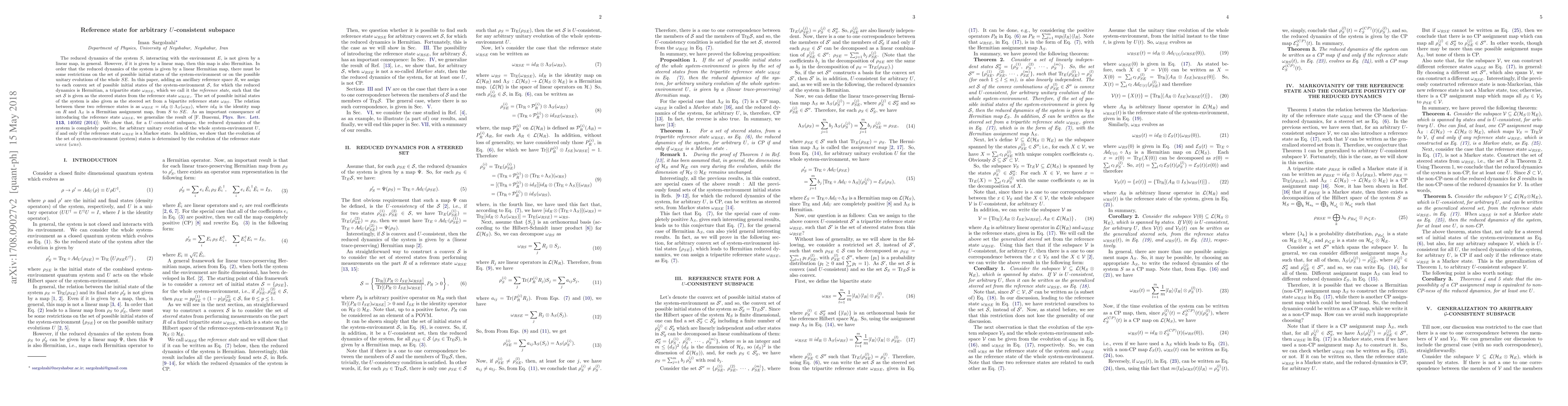 The reduced dynamics of the system $S$, interacting with the environment $E$, is not given by a linear map, in general. However, if it is given by a linear map, then this map is also Hermitian. In order that the reduced dynamics of the system is given by a linear Hermitian map, there must be some restrictions on the set of possible initial states of the system-environment or on the possible unitary evolutions of the whole $SE$. In this paper, adding an ancillary reference space $R$, we assign to each convex set of possible initial states of the system-environment $\mathcal{S}$, for which the reduced dynamics is Hermitian, a tripartite state $\omega_{RSE}$, which we call it the reference state, such that the set $\mathcal{S}$ is given as the steered states from the reference state $\omega_{RSE}$,. The set of possible initial states of the system is also given as the steered set from a bipartite reference state $\omega_{RS}$. The relation between these two reference states is as $\omega_{RSE}=id_{R}\otimes \Lambda_{S}(\omega_{RS})$, where $id_{R}$ is the identity map on $R$ and $\Lambda_{S}$ is a Hermitian assignment map, from $S$ to $SE$. As an important consequence of introducing the reference state $\omega_{RSE}$, we generalize the result of [F. Buscemi, Phys. Rev. Lett. 113, 140502 (2014)]: We show that, for a $U$-consistent subspace, the reduced dynamics of the system is completely positive, for arbitrary unitary evolution of the whole system-environment $U$, if and only if the reference state $\omega_{RSE}$ is a Markov state. In addition, we show that the evolution of the set of system-environment (system) states is determined by the evolution of the reference state $\omega_{RSE}$ ($\omega_{RS}$).