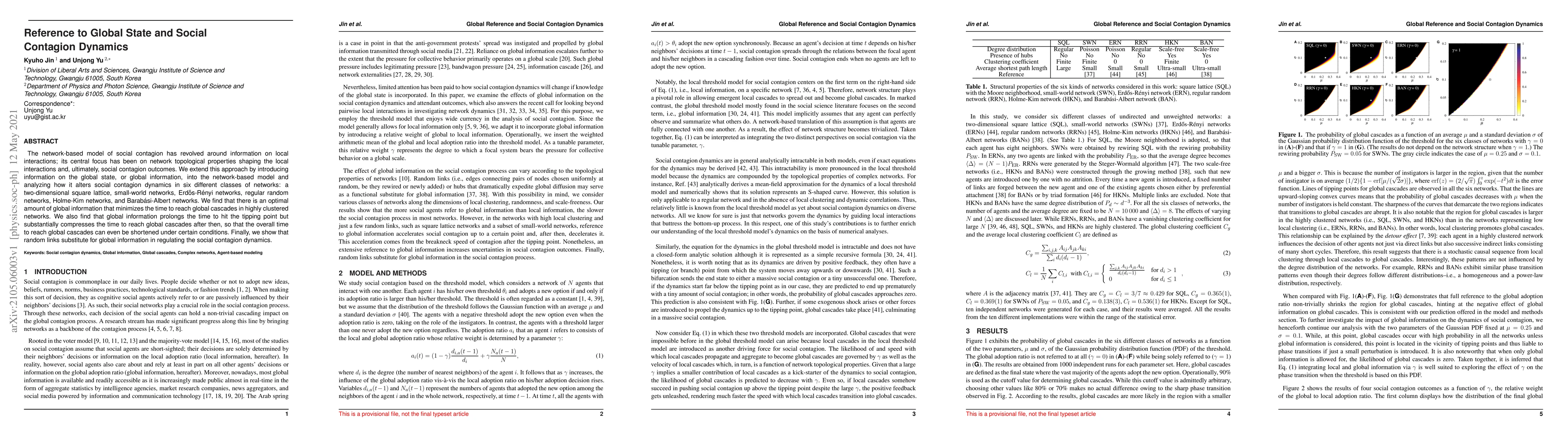 This paper extends a network-based model of social contagion by incorporating global state information, demonstrating that an optimal amount of global information can minimize the time to global cascades in clustered networks. It also finds that while global information delays the tipping point, it can significantly reduce the time to reach global cascades afterward, with random links sometimes substituting for this effect.