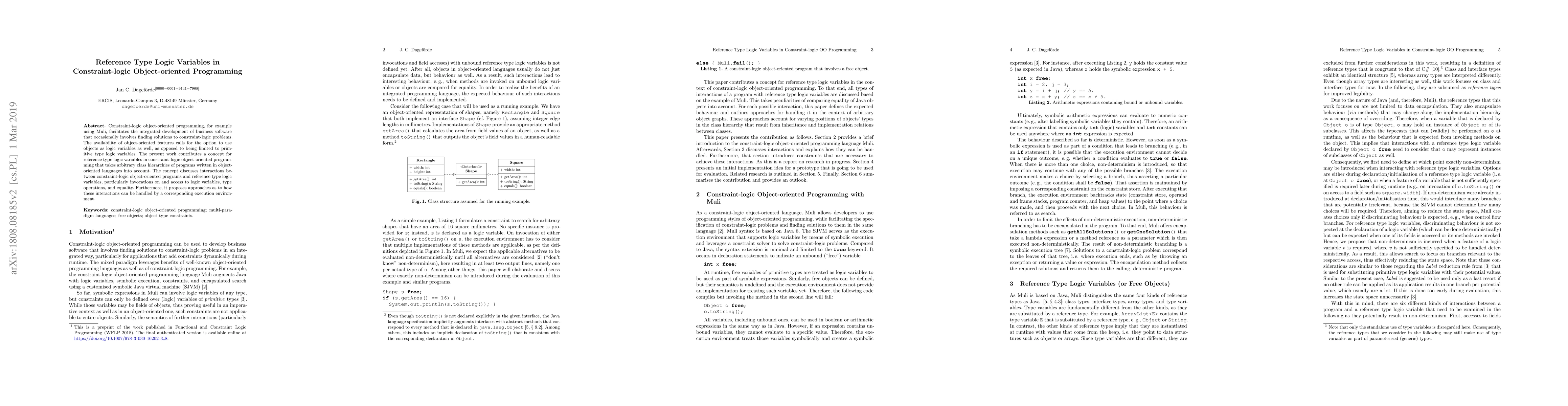 This paper introduces the concept of reference type logic variables in constraint-logic object-oriented programming, allowing objects to serve as logic variables. It explores interactions such as invocations, access, type operations, and equality involving these variables and proposes execution environment strategies to manage them.