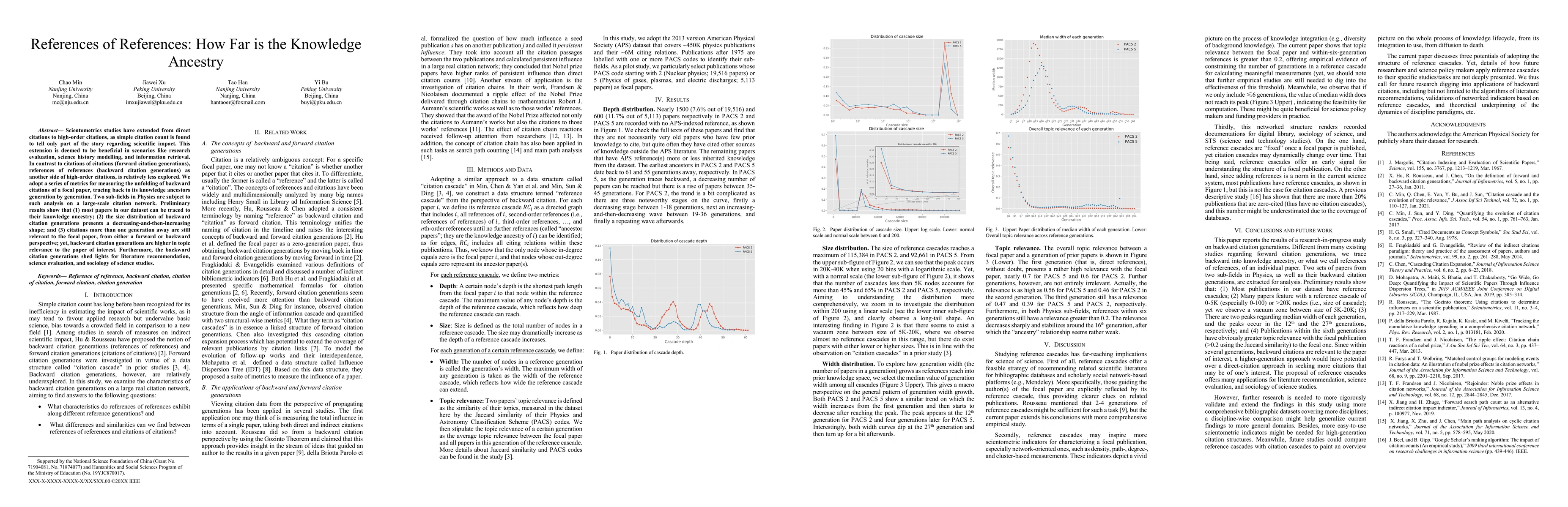 This paper explores high-order citations through references of references, a less studied aspect of scientific impact, using metrics to trace knowledge ancestry in Physics. Findings indicate significant knowledge ancestry, a unique size distribution pattern in backward citation generations, and high topic relevance of distant citations, enhancing literature recommendation and science evaluation.