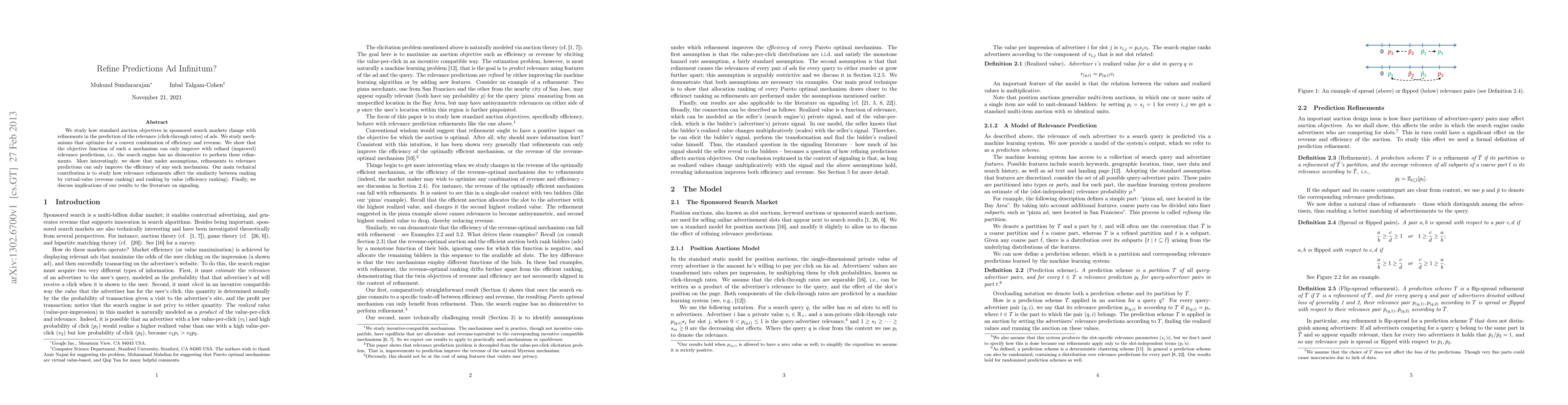 Refinements in ad relevance predictions can improve search engine efficiency without disincentivizing further refinements, while also potentially improving revenue ranking accuracy.