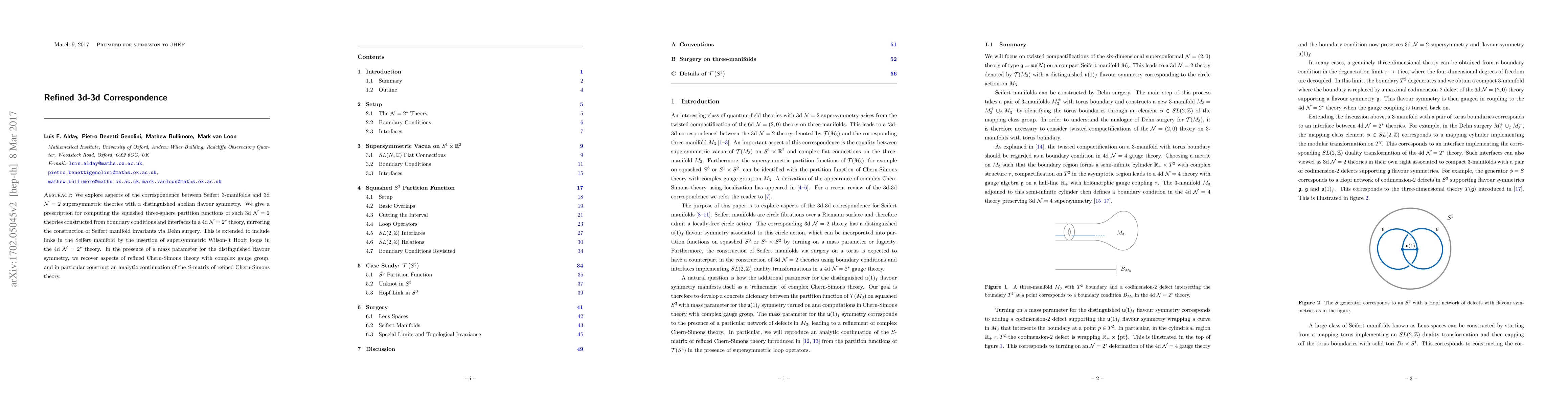 We explore aspects of the correspondence between Seifert 3-manifolds and 3d $\mathcal{N}=2$ supersymmetric theories with a distinguished abelian flavour symmetry. We give a prescription for computing the squashed three-sphere partition functions of such 3d $\mathcal{N}=2$ theories constructed from boundary conditions and interfaces in a 4d $\mathcal{N}=2^*$ theory, mirroring the construction of Seifert manifold invariants via Dehn surgery. This is extended to include links in the Seifert manifold by the insertion of supersymmetric Wilson-'t Hooft loops in the 4d $\mathcal{N}=2^*$ theory. In the presence of a mass parameter for the distinguished flavour symmetry, we recover aspects of refined Chern-Simons theory with complex gauge group, and in particular construct an analytic continuation of the $S$-matrix of refined Chern-Simons theory.