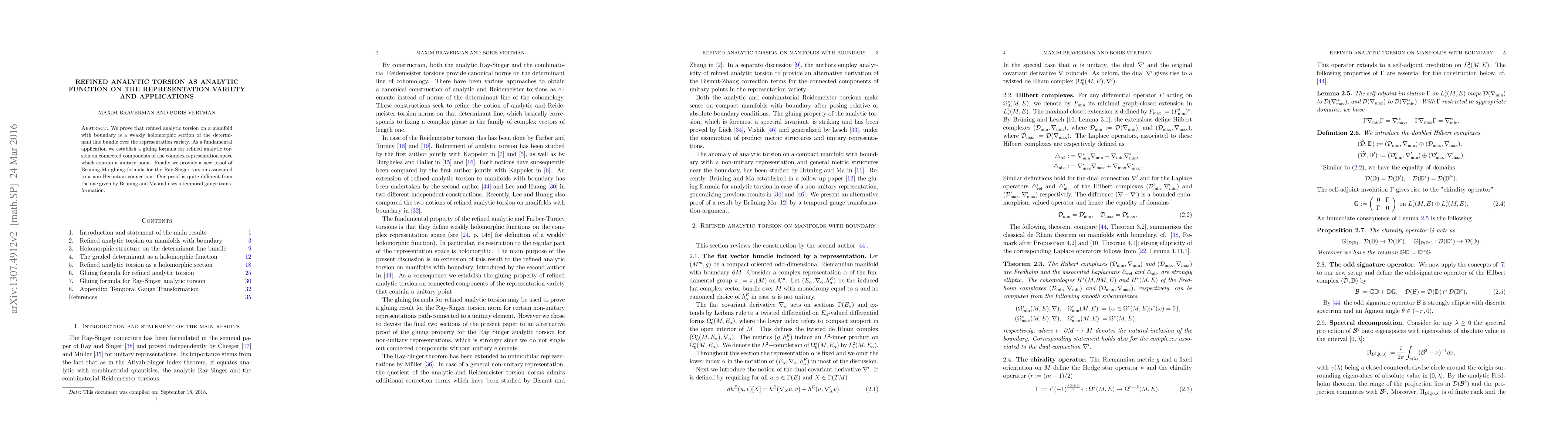 The paper proves that refined analytic torsion on a manifold with boundary is an analytic function on the representation variety, and establishes a gluing formula for its connected components containing a unitary point. It also provides a new proof for the Bruening-Ma gluing formula for Ray-Singer torsion using a temporal gauge transformation.