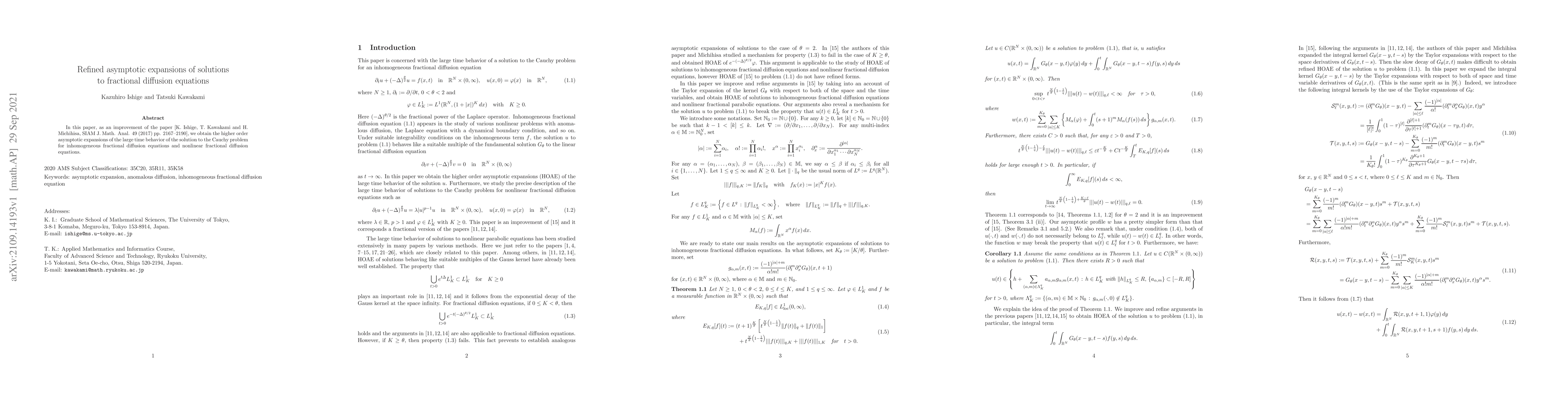 Understanding the large-time asymptotic behavior of solutions to fractional diffusion equations is crucial for modeling real-world phenomena, such as heat transfer and mass transport in complex systems.