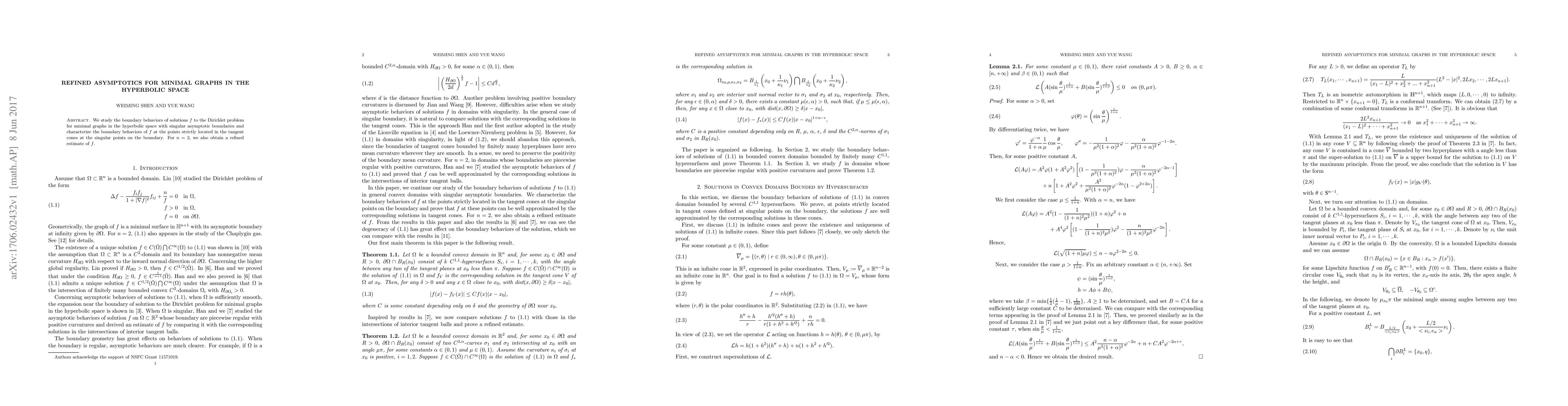 We study the boundary behaviors of solutions $f$ to the Dirichlet problem for minimal graphs in the hyperbolic space with singular asymptotic boundaries and characterize the boundary behaviors of $f$ at the points strictly located in the tangent cones at the singular points on the boundary. For $n=2$, we also obtain a refined estimate of $f.$