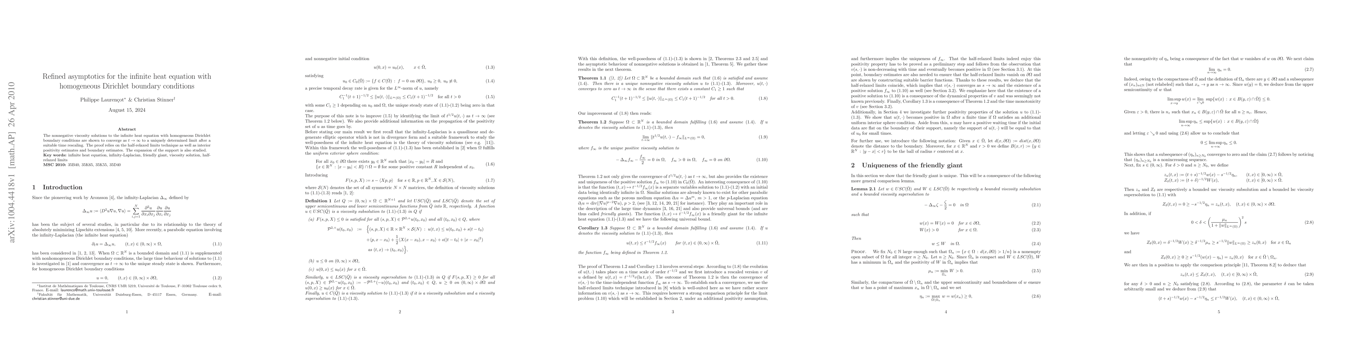 This paper demonstrates that the nonnegative viscosity solutions to the infinite heat equation with homogeneous Dirichlet boundary conditions converge to a unique limit as time approaches infinity, following a time rescaling. The study employs half-relaxed limits, interior positivity estimates, and boundary estimates to achieve the result.