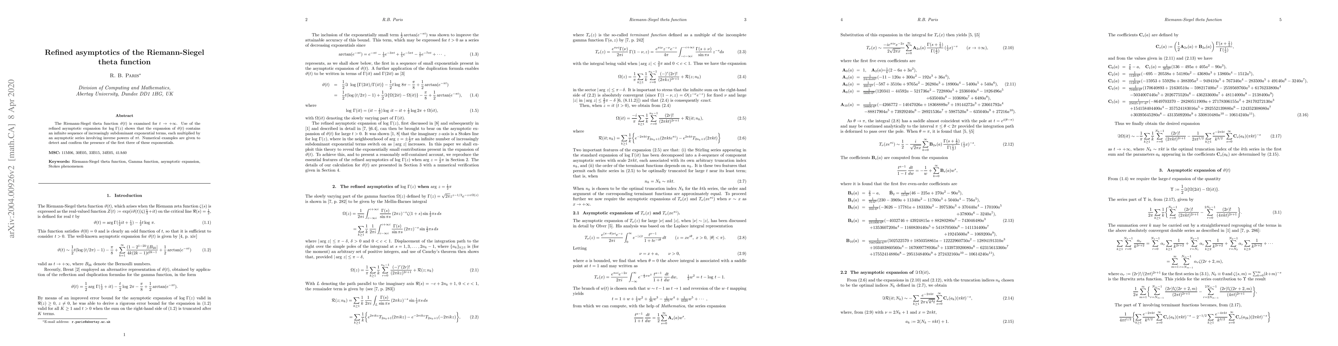 The Riemann-Siegel theta function $\vartheta(t)$ is examined for $t\to+\infty$. Use of the refined asymptotic expansion for $\log\,\g(z)$ shows that the expansion of $\vartheta(t)$ contains an infinite sequence of increasingly subdominant exponential terms, each multiplied by an asymptotic series involving inverse powers of $\pi t$. Numerical examples are given to detect and confirm the presence of the first three of these exponentials.