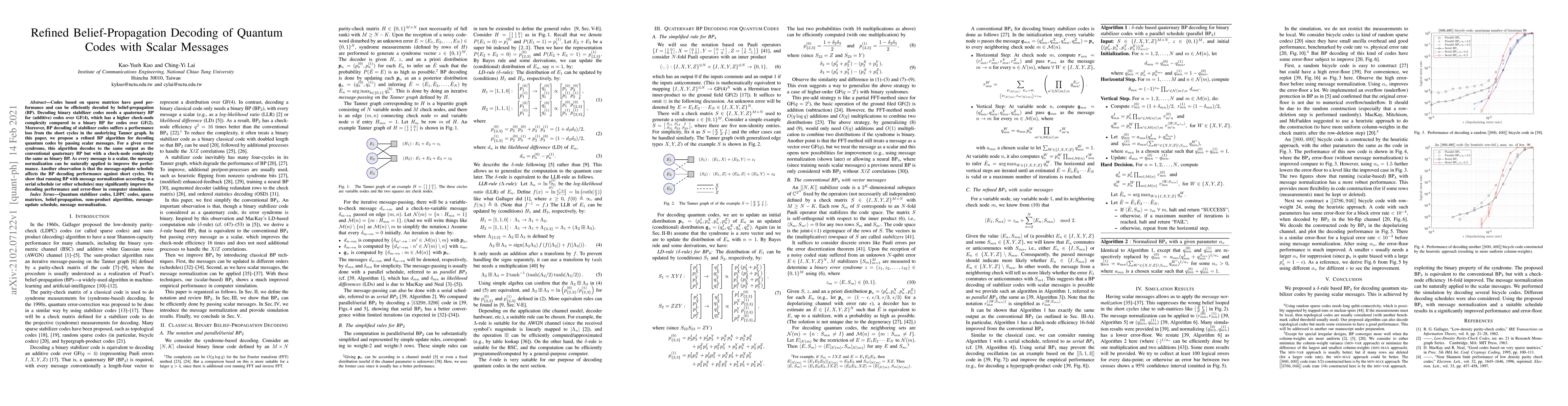 This paper proposes a refined belief-propagation algorithm for decoding quantum codes using scalar messages, achieving the same performance as conventional quaternary BP but with binary BP's complexity. The use of scalar messages and a serial update schedule significantly enhances decoding performance and reduces error-floors.
