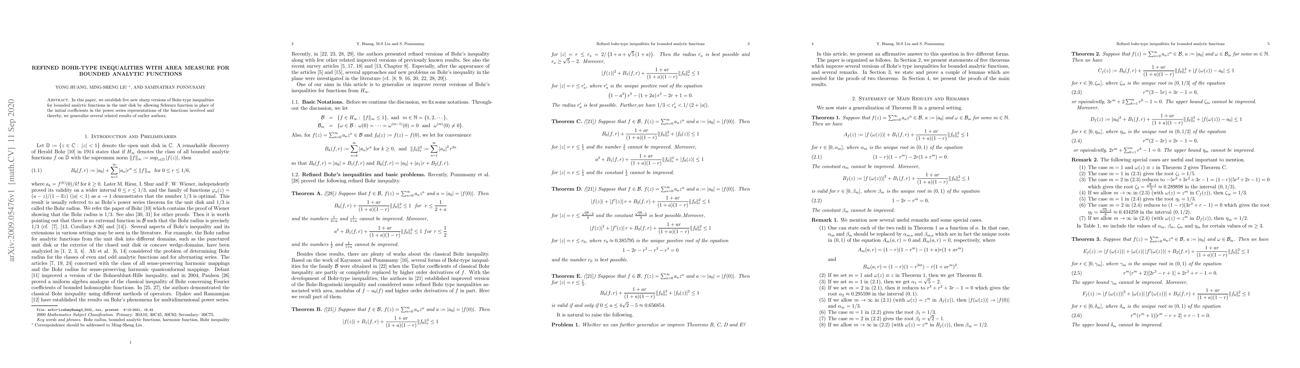 Researchers established five new sharp versions of Bohr-type inequalities for bounded analytic functions in the unit disk using a broader range of coefficients, generalizing earlier results.