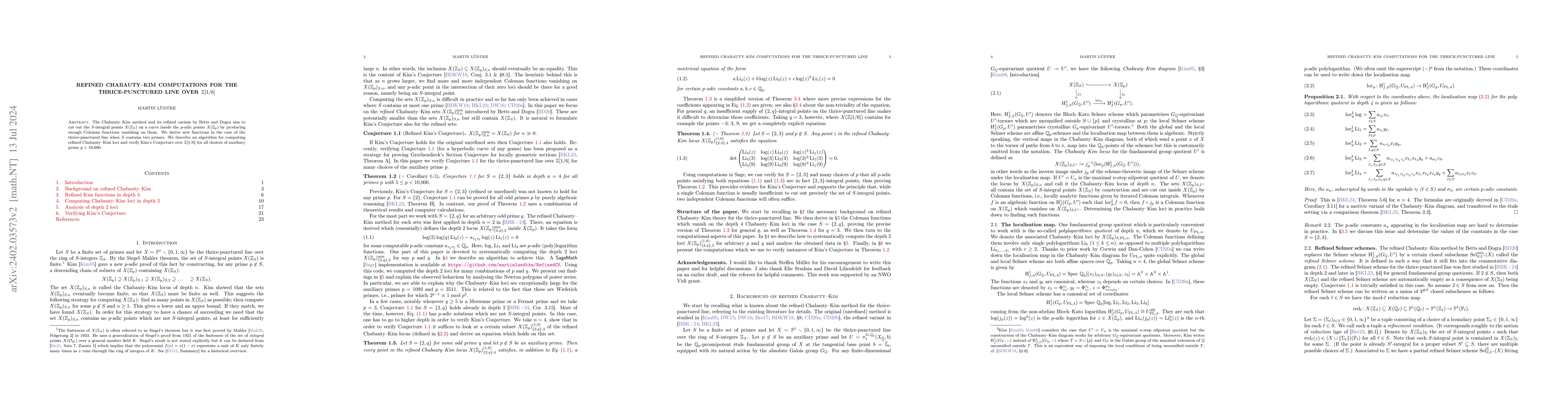 This paper refines the Chabauty-Kim method to compute $S$-integral points on the thrice-punctured line over $\mathbb{Z}[1/6]$. It introduces new Coleman functions and verifies Kim's conjecture for all auxiliary primes less than 10,000.