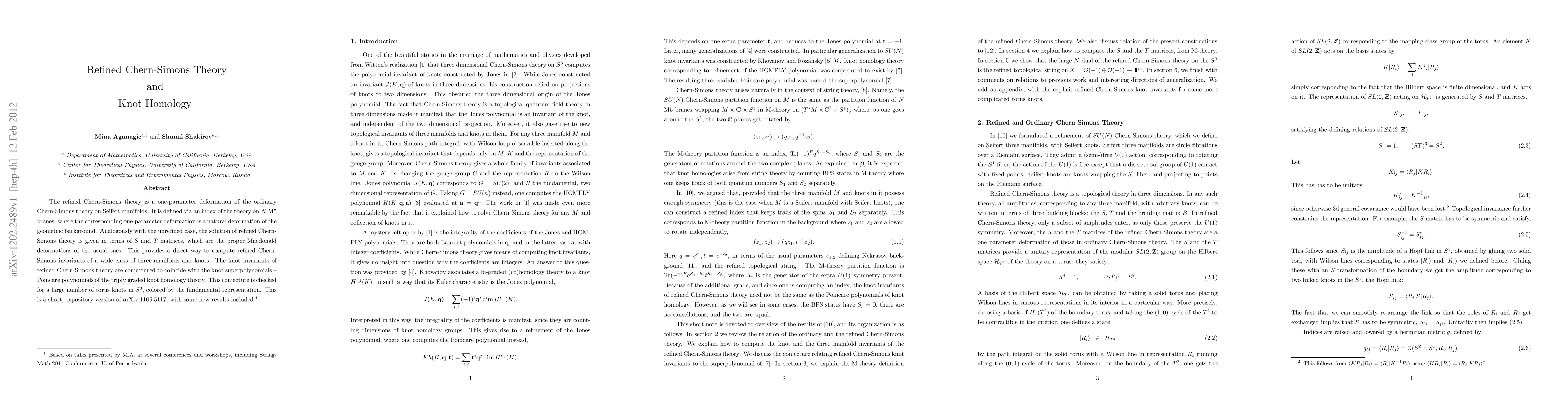 The refined Chern-Simons theory is a one-parameter deformation of the ordinary Chern-Simons theory on Seifert manifolds. It is defined via an index of the theory on N M5 branes, where the corresponding one-parameter deformation is a natural deformation of the geometric background. Analogously with the unrefined case, the solution of refined Chern-Simons theory is given in terms of S and T matrices, which are the proper Macdonald deformations of the usual ones. This provides a direct way to compute refined Chern-Simons invariants of a wide class of three-manifolds and knots. The knot invariants of refined Chern-Simons theory are conjectured to coincide with the knot superpolynomials -- Poincare polynomials of the triply graded knot homology theory. This conjecture is checked for a large number of torus knots in S^3, colored by the fundamental representation. This is a short, expository version of arXiv:1105.5117, with some new results included.