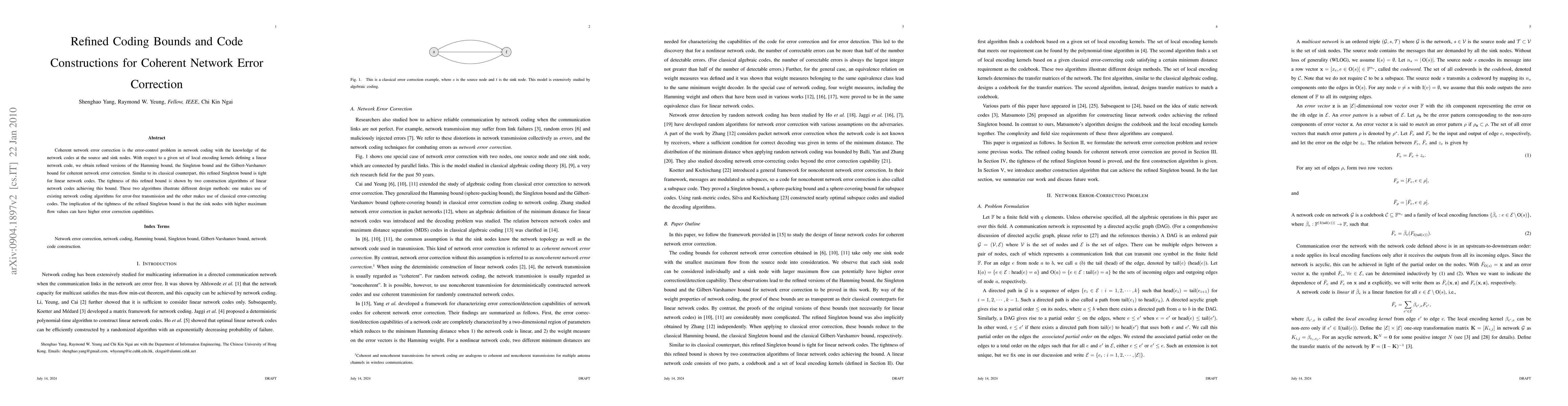 This paper refines coding bounds for coherent network error correction, presenting improved versions of the Hamming, Singleton, and Gilbert-Varshamov bounds. It demonstrates the tightness of the refined Singleton bound through two construction algorithms, highlighting the enhanced error correction capabilities of nodes with higher maximum flow values.