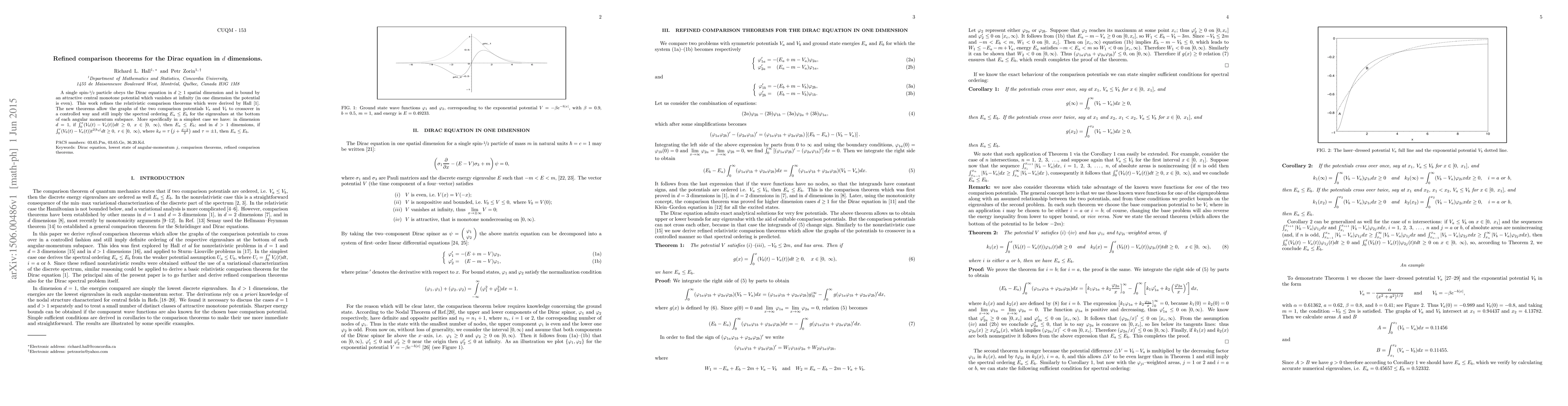 This paper refines relativistic comparison theorems for the Dirac equation in $d$ spatial dimensions, allowing potentials $V_a$ and $V_b$ to cross over while still maintaining spectral ordering $E_a\le E_b$. The refined theorems provide conditions for this ordering in both one and higher dimensions.