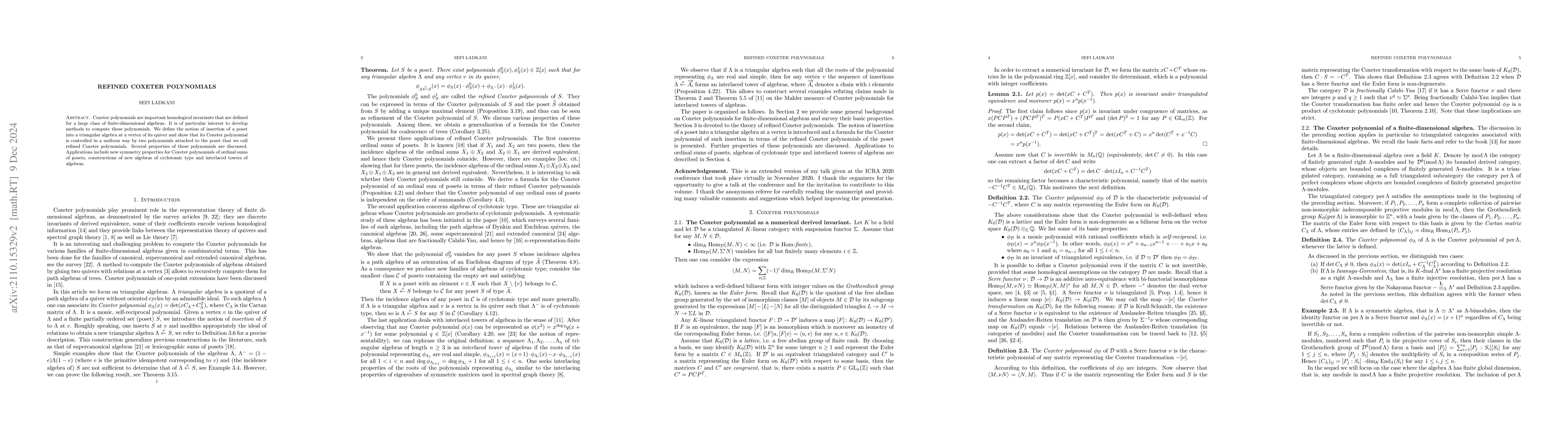 This paper introduces refined Coxeter polynomials, which control the Coxeter polynomial of a triangular algebra via poset insertion. It discusses properties of these refined polynomials and their applications in revealing symmetries, constructing new cyclotomic algebras, and forming interlaced towers of algebras.