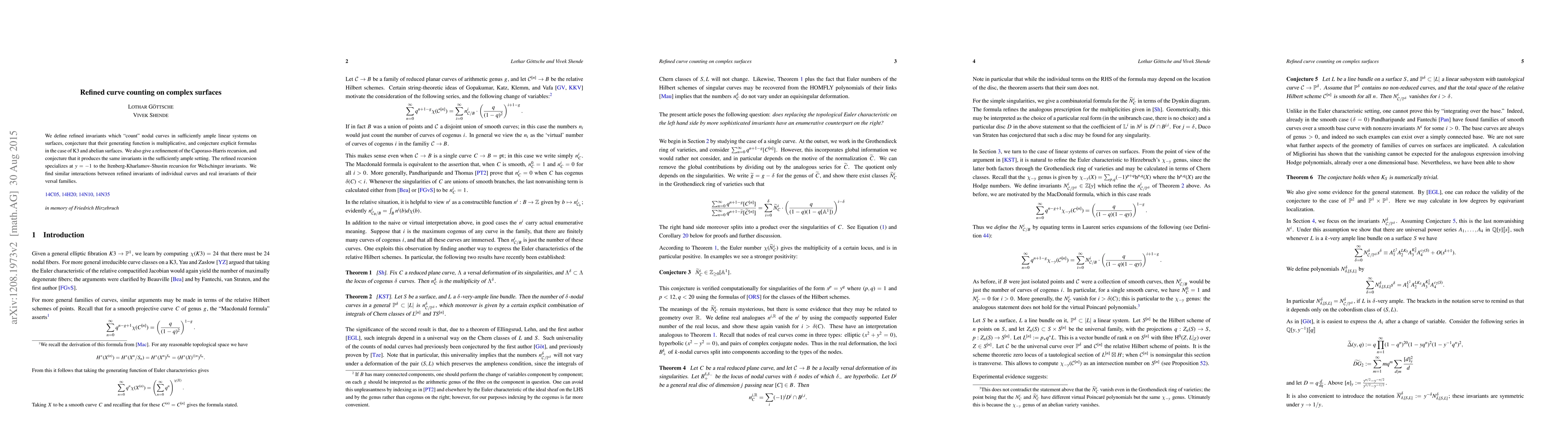 Researchers develop a new method to count nodal curves on complex surfaces, proposing a multiplicative generating function for these counts and a refined recursion that predicts similar interactions between curve invariants and their families.