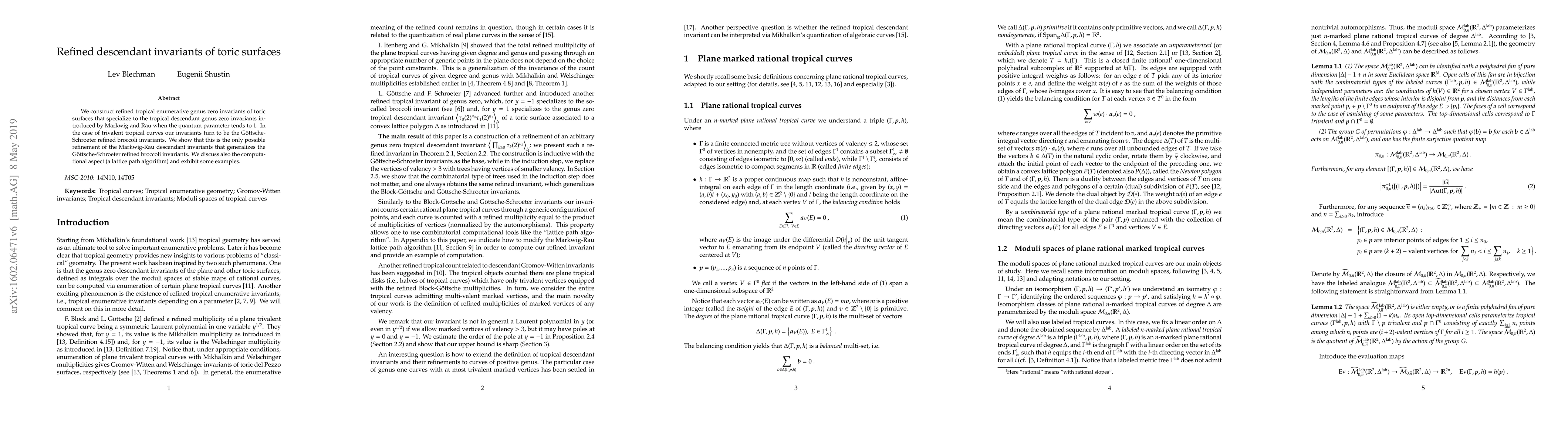 This paper constructs refined tropical enumerative invariants for toric surfaces that specialize to the Markwig-Rau invariants, specifically identifying the Goettsche-Schroeter refined broccoli invariants for trivalent tropical curves, and presents a lattice path algorithm for computation.