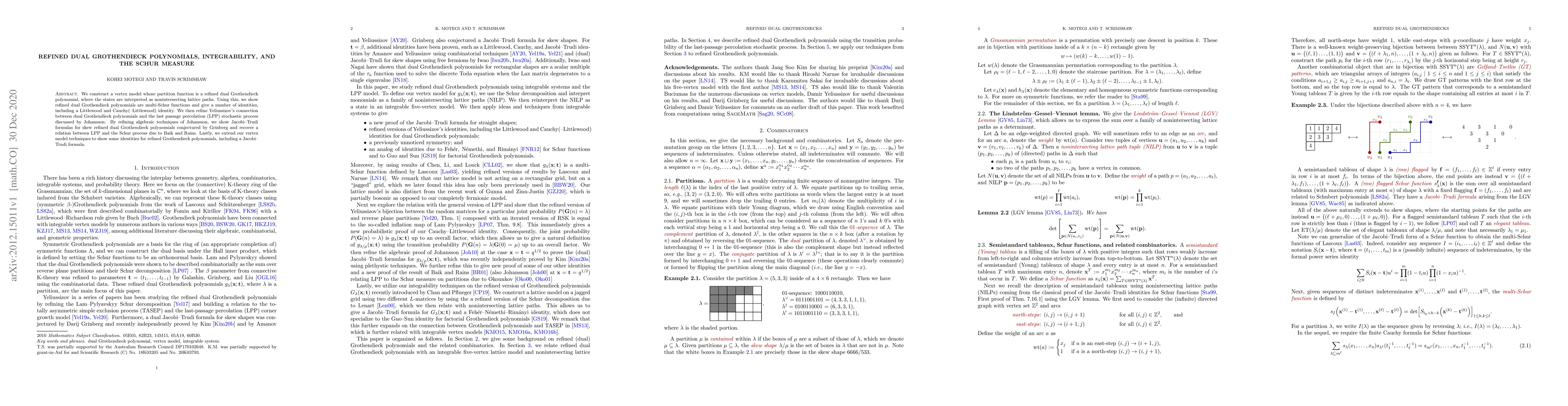 This paper constructs a vertex model linked to refined dual Grothendieck polynomials, proving they are multi-Schur functions and deriving several identities. It also refines connections between dual Grothendieck polynomials and the last passage percolation stochastic process, and extends these insights to refined Grothendieck polynomials.