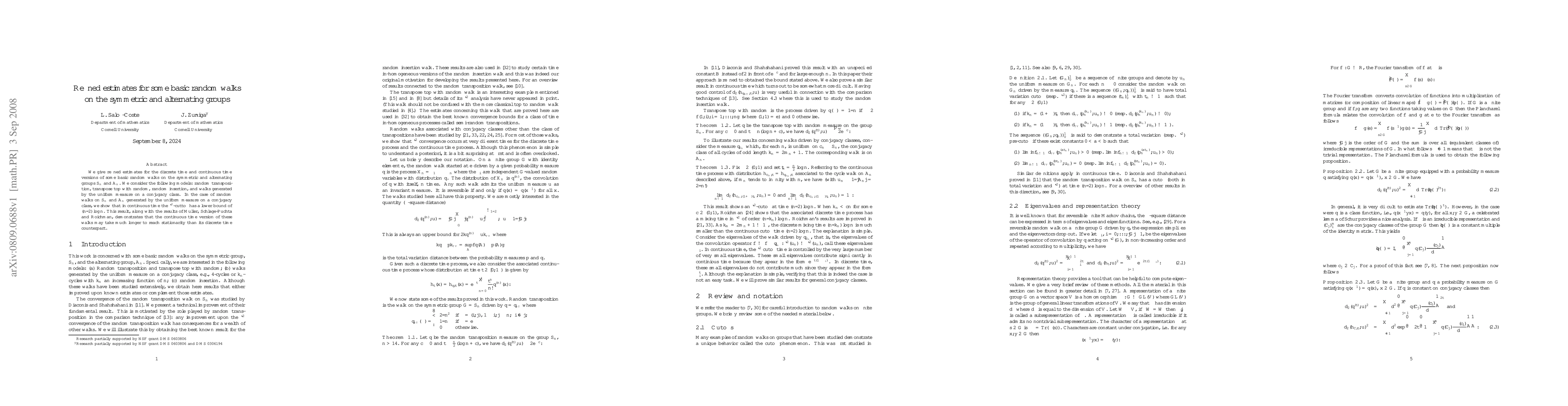 Researchers provide refined estimates for random walks on symmetric and alternating groups, showing that continuous time versions can take much longer to reach stationarity than their discrete counterparts.