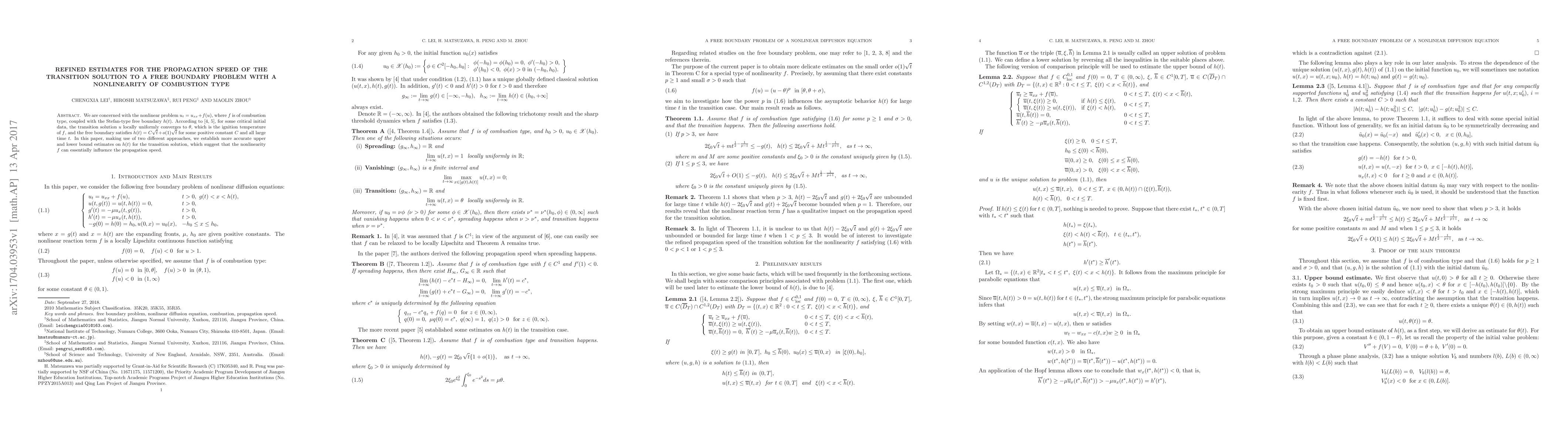 We are concerned with the nonlinear problem $u_t=u_{xx}+f(u)$, where $f$ is of combustion type, coupled with the Stefan-type free boundary $h(t)$. According to [4,5], for some critical initial data, the transition solution $u$ locally uniformly converges to $\theta$, which is the ignition temperature of $f$, and the free boundary satisfies $h(t)=C\sqrt{t}+o(1)\sqrt{t}$ for some positive constant $C$ and all large time $t$. In this paper, making use of two different approaches, we establish more accurate upper and lower bound estimates on $h(t)$ for the transition solution, which suggest that the nonlinearity $f$ can essentially influence the propagation speed.