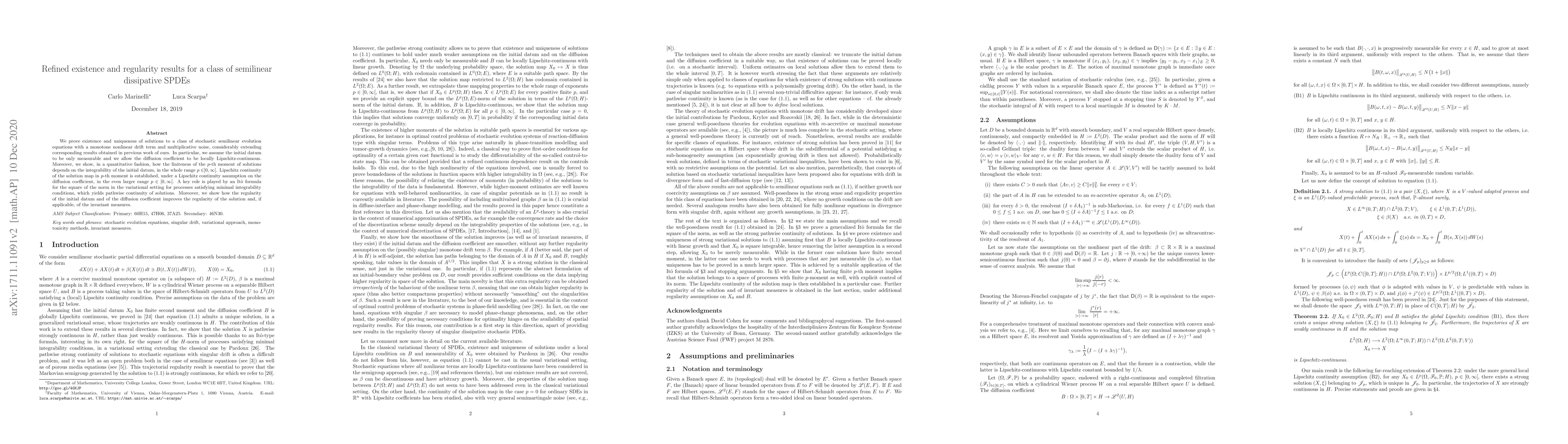 We prove existence and uniqueness of solutions to a class of stochastic semilinear evolution equations with a monotone nonlinear drift term and multiplicative noise, considerably extending corresponding results obtained in previous work of ours. In particular, we assume the initial datum to be only measurable and we allow the diffusion coefficient to be locally Lipschitz-continuous. Moreover, we show, in a quantitative fashion, how the finiteness of the $p$-th moment of solutions depends on the integrability of the initial datum, in the whole range $p \in ]0,\infty[$. Lipschitz continuity of the solution map in $p$-th moment is established, under a Lipschitz continuity assumption on the diffusion coefficient, in the even larger range $p \in [0,\infty[$. A key role is played by an It\^o formula for the square of the norm in the variational setting for processes satisfying minimal integrability conditions, which yields pathwise continuity of solutions. Moreover, we show how the regularity of the initial datum and of the diffusion coefficient improves the regularity of the solution and, if applicable, of the invariant measures.