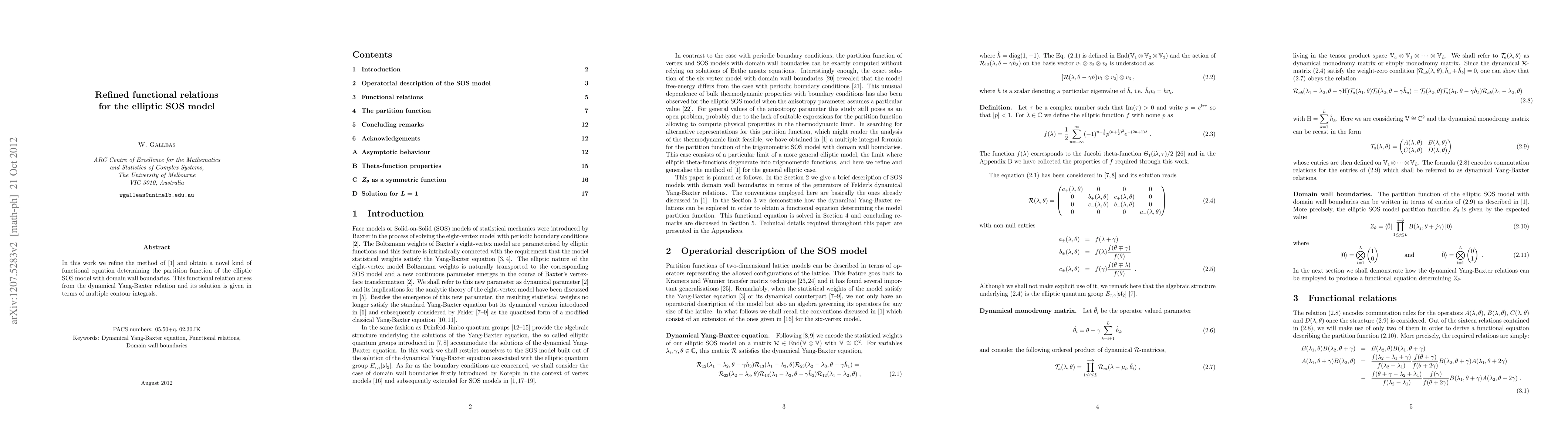 In this work we refine the method of [1] and obtain a novel kind of functional equation determining the partition function of the elliptic SOS model with domain wall boundaries. This functional relation is originated from the dynamical Yang-Baxter algebra and its solution is given in terms of multiple contour integrals.