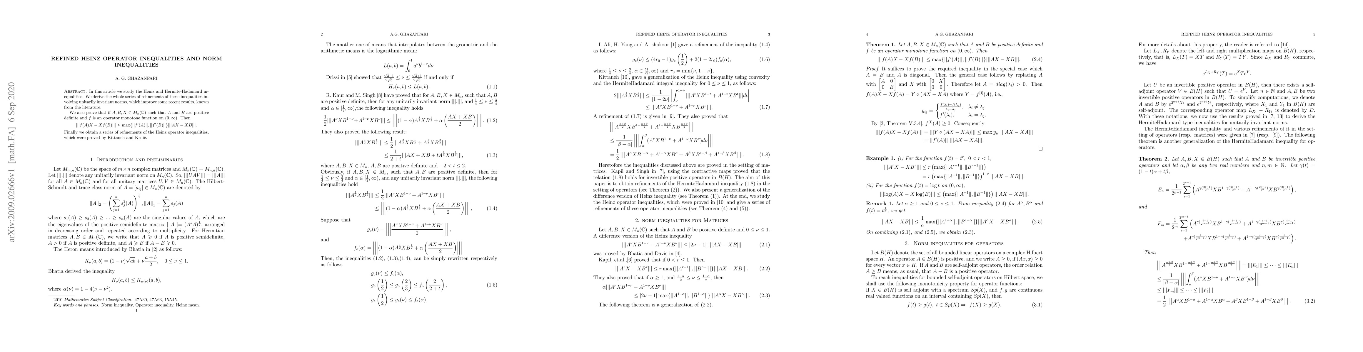 This paper refines Heinz and Hermite-Hadamard inequalities using unitarily invariant norms, improving recent results. It also proves a new norm inequality for positive definite matrices and operator monotone functions, and provides further refinements of Heinz operator inequalities.