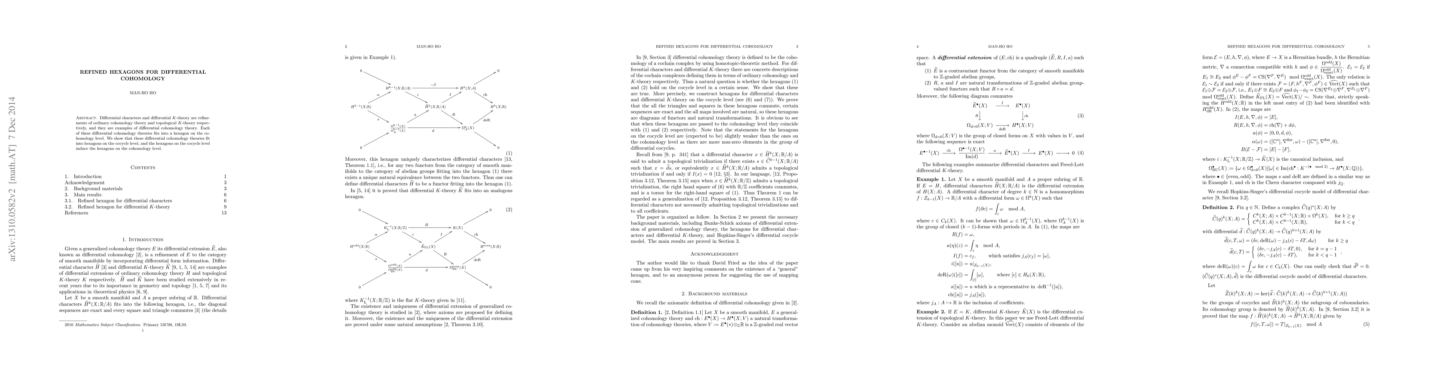 This paper explores how Cheeger-Simons differential characters and differential $K$-theory, refinements of ordinary cohomology and topological $K$-theory respectively, can be organized into refined hexagons on both the cohomology and cocycle levels, with the cocycle hexagons inducing the cohomology hexagons.