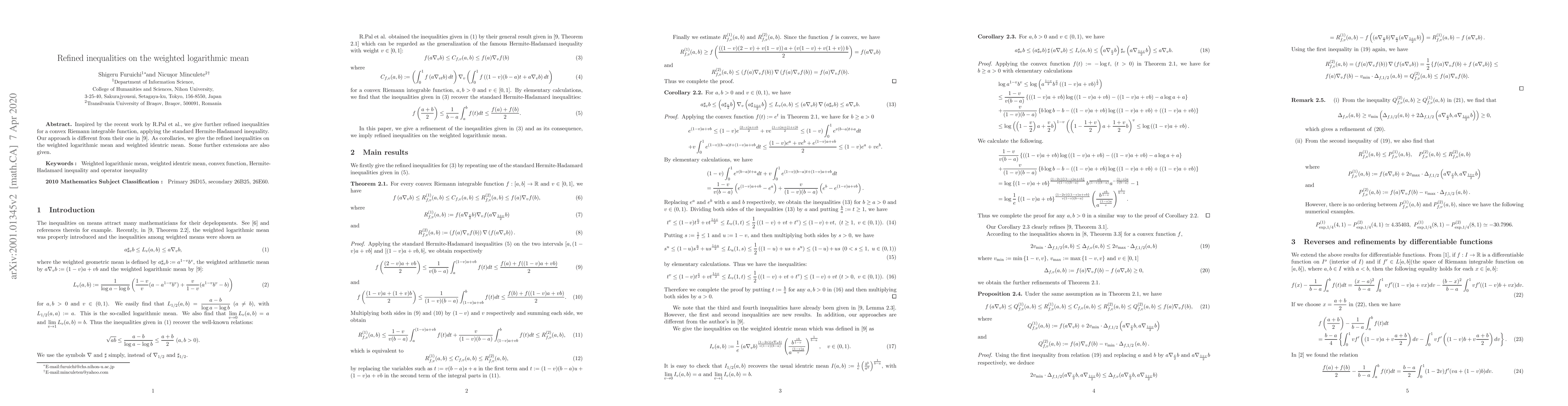 This paper refines inequalities for convex Riemann integrable functions using the Hermite-Hadamard inequality, differing from previous work by R. Pal et al. It also presents refined inequalities on the weighted logarithmic mean and weighted identric mean, along with extensions.