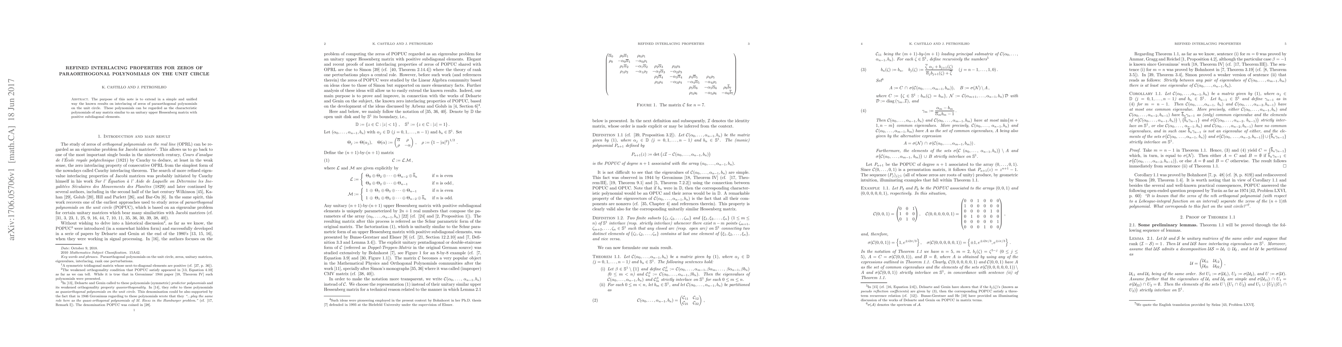 Summary: This paper extends the interlacing properties of zeros for paraorthogonal polynomials on the unit circle, providing a unified approach. These polynomials correspond to the characteristic polynomials of matrices similar to unitary upper Hessenberg matrices with positive subdiagonal elements.