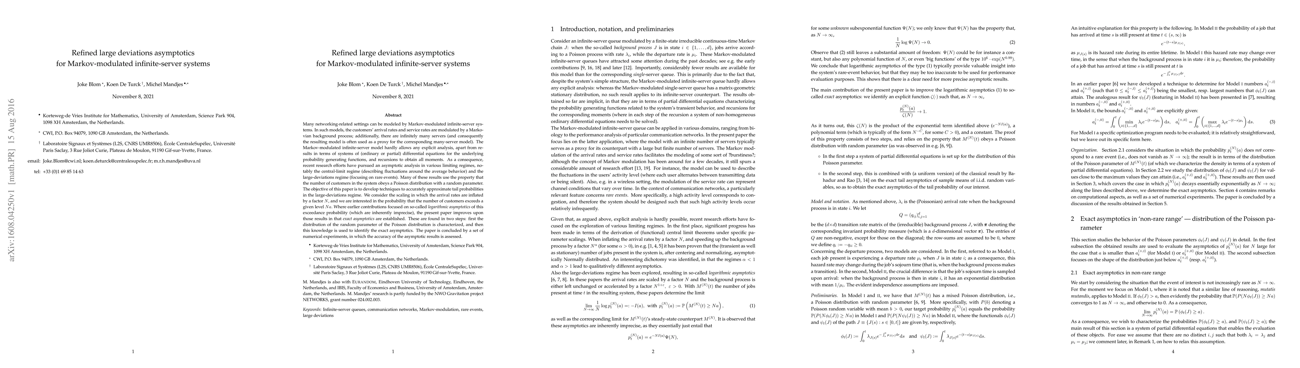 The paper presents refined large deviations asymptotics for Markov-modulated infinite-server systems, providing exact asymptotic expressions for tail probabilities in the large-deviations regime.