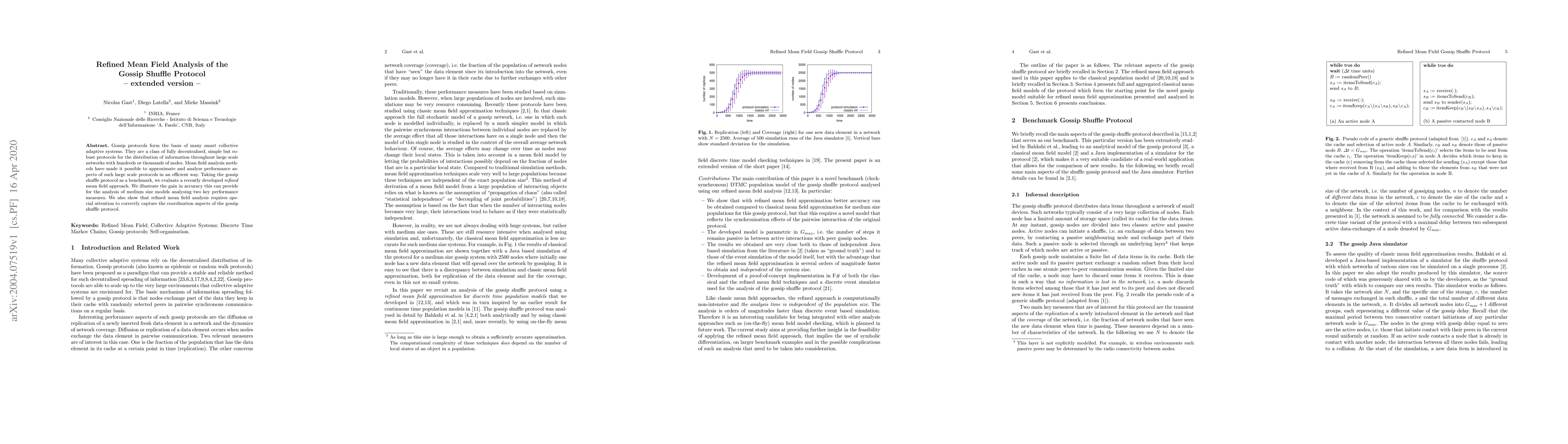 Gossip protocols form the basis of many smart collective adaptive systems. They are a class of fully decentralised, simple but robust protocols for the distribution of information throughout large scale networks with hundreds or thousands of nodes. Mean field analysis methods have made it possible to approximate and analyse performance aspects of such large scale protocols in an efficient way. Taking the gossip shuffle protocol as a benchmark, we evaluate a recently developed refined mean field approach. We illustrate the gain in accuracy this can provide for the analysis of medium size models analysing two key performance measures. We also show that refined mean field analysis requires special attention to correctly capture the coordination aspects of the gossip shuffle protocol.