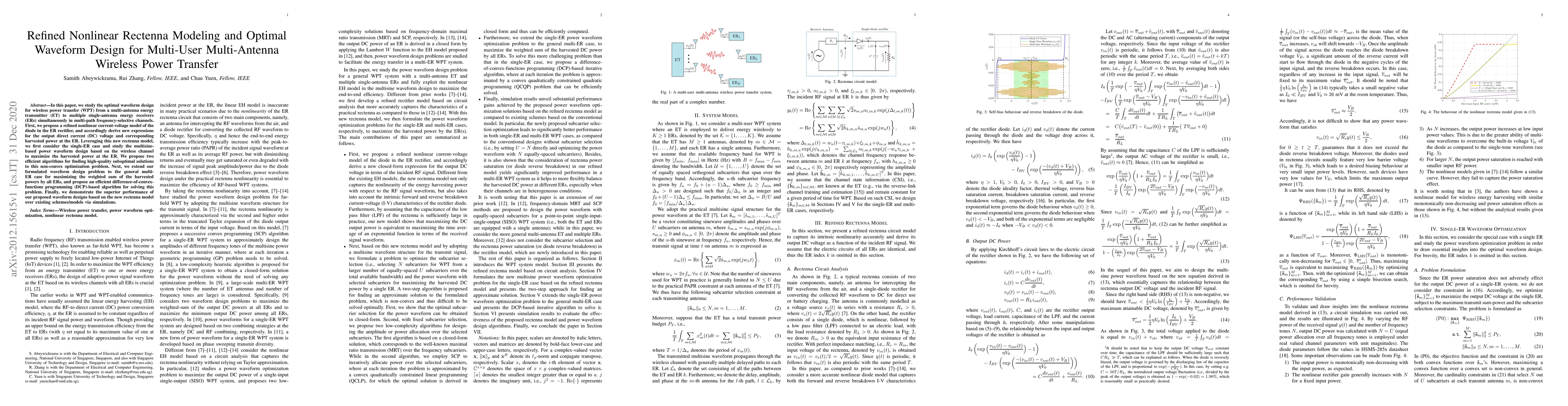 This paper proposes a refined nonlinear model for rectifiers in wireless power transfer systems and develops optimal waveform design algorithms for maximizing harvested power from a multi-antenna transmitter to multiple receivers. It introduces efficient algorithms for both single and multi-user scenarios, demonstrating superior performance over existing methods.