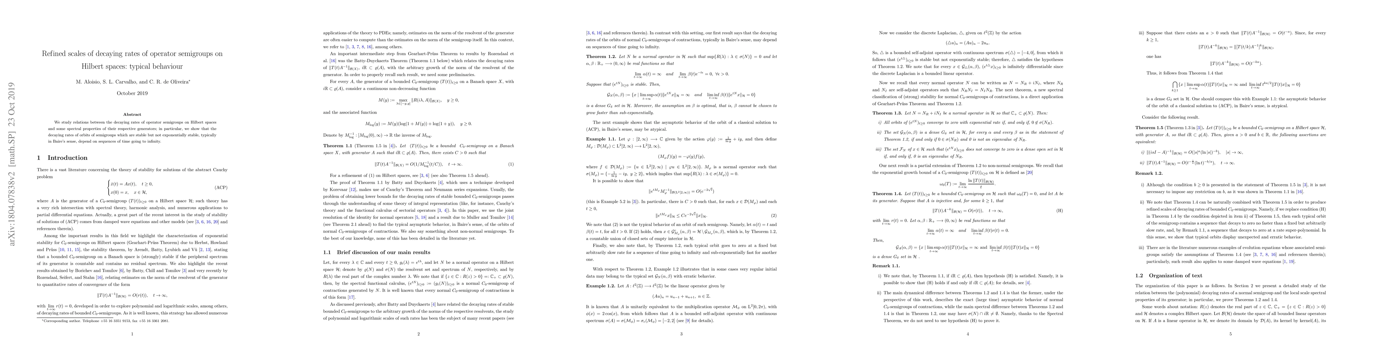 We study relations between the decaying rates of operator semigroups on Hilbert spaces and some spectral properties of their respective generators; in particular, we show that the decaying rates of orbits of semigroups which are stable but not exponentially stable, typically in Baire's sense, depend on sequences of time going to infinity.