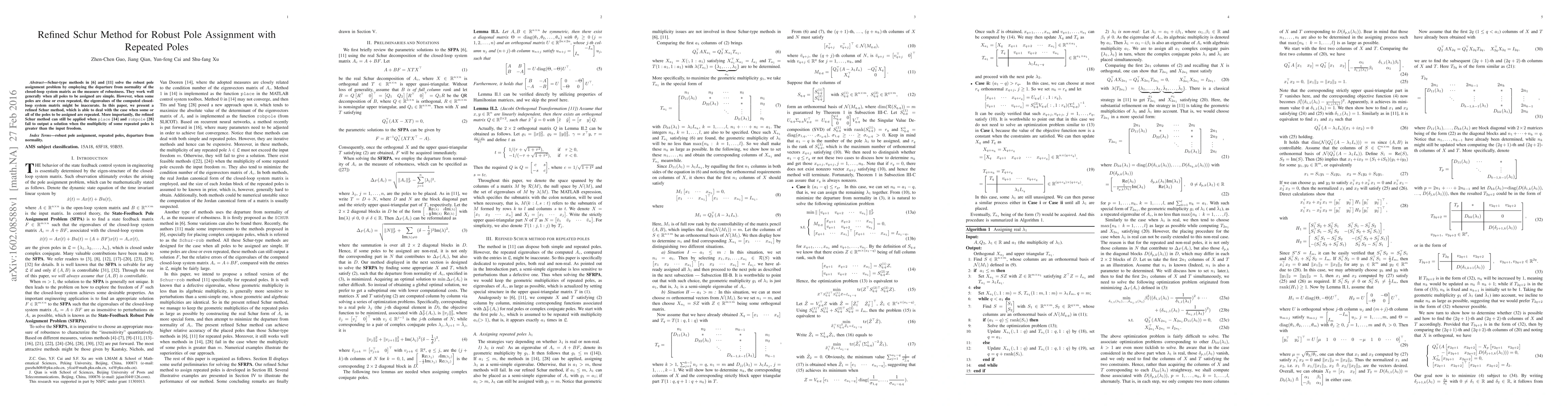 The paper presents a refined Schur method for robust pole assignment, addressing the issue of inaccuracies when dealing with repeated poles, which traditional Schur-type methods struggle with.
