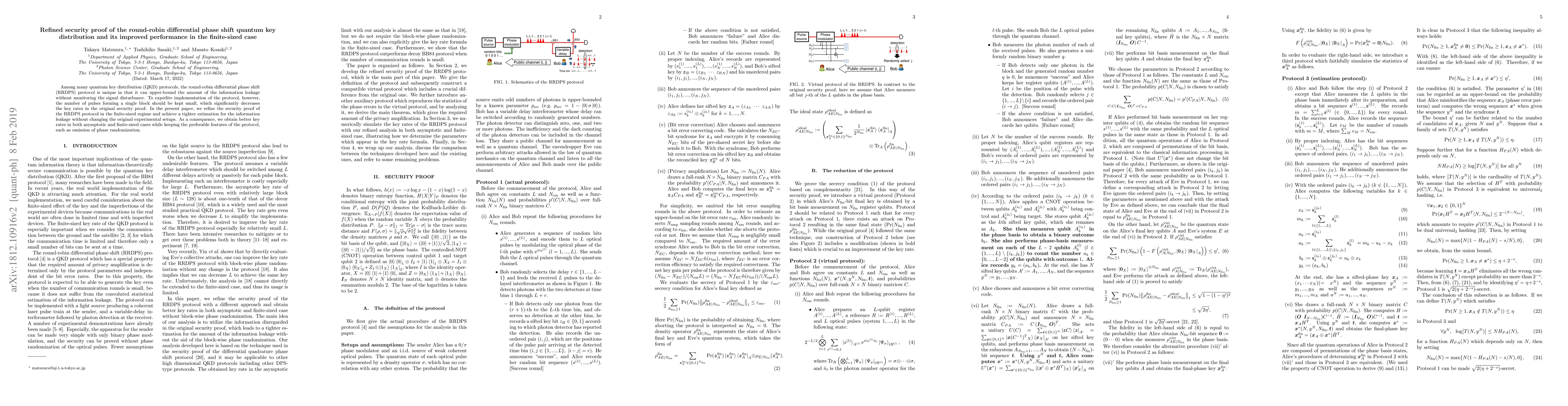 This paper refines the security proof for the round-robin differential phase shift (RRDPS) quantum key distribution protocol, achieving a tighter estimation of information leakage in finite-sized scenarios. The improved proof maintains better key rates without altering the protocol's advantageous features, such as the omission of phase randomization.