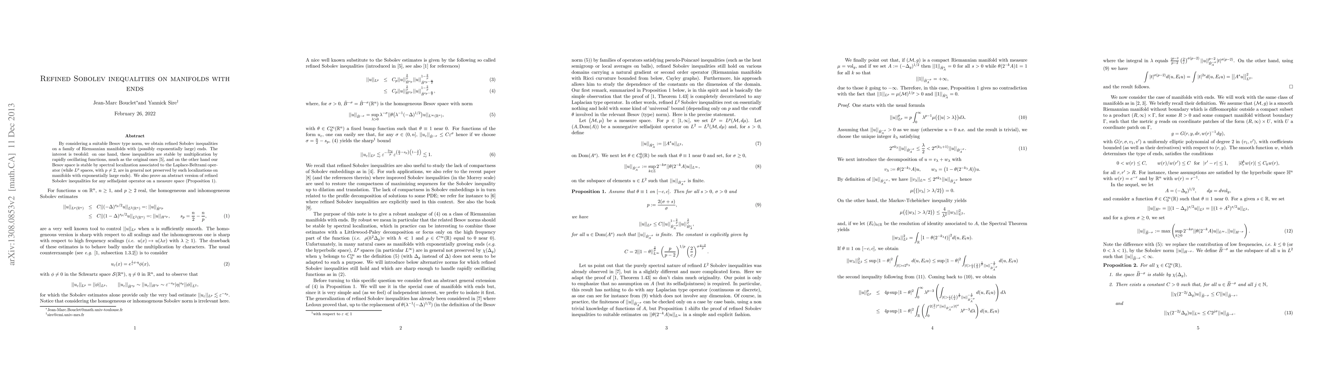 Researchers develop refined Sobolev inequalities on manifolds with ends, establishing stability for multiplication by rapidly oscillating functions and spectral localization associated to the Laplace-Beltrami operator.
