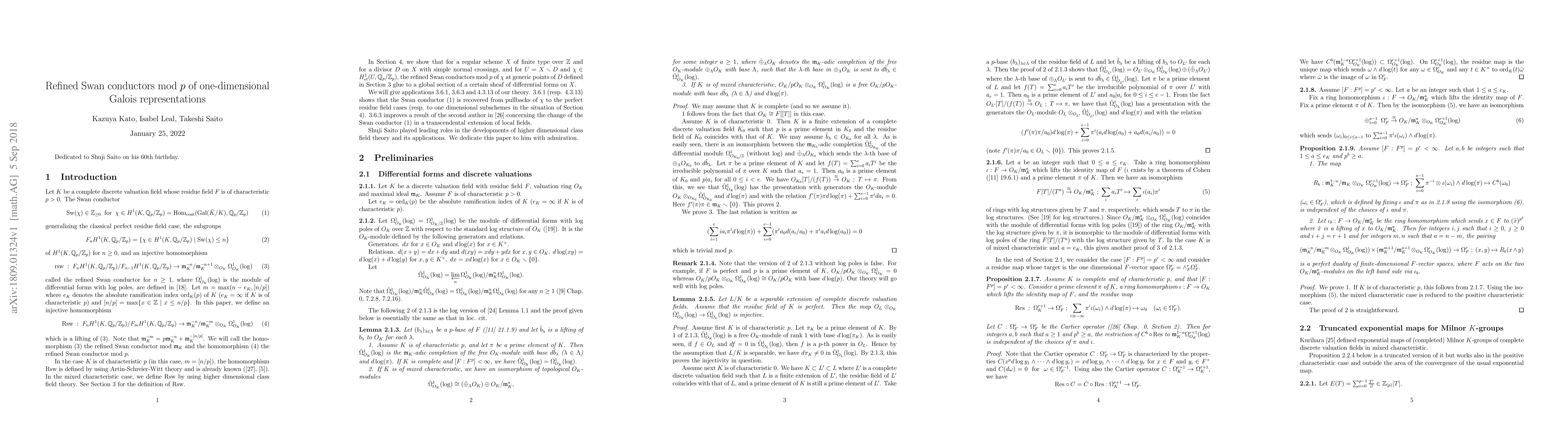 For a character of the absolute Galois group of a complete discrete valuation field, we define a lifting of the refined Swan conductor, using higher dimensional class field theory.