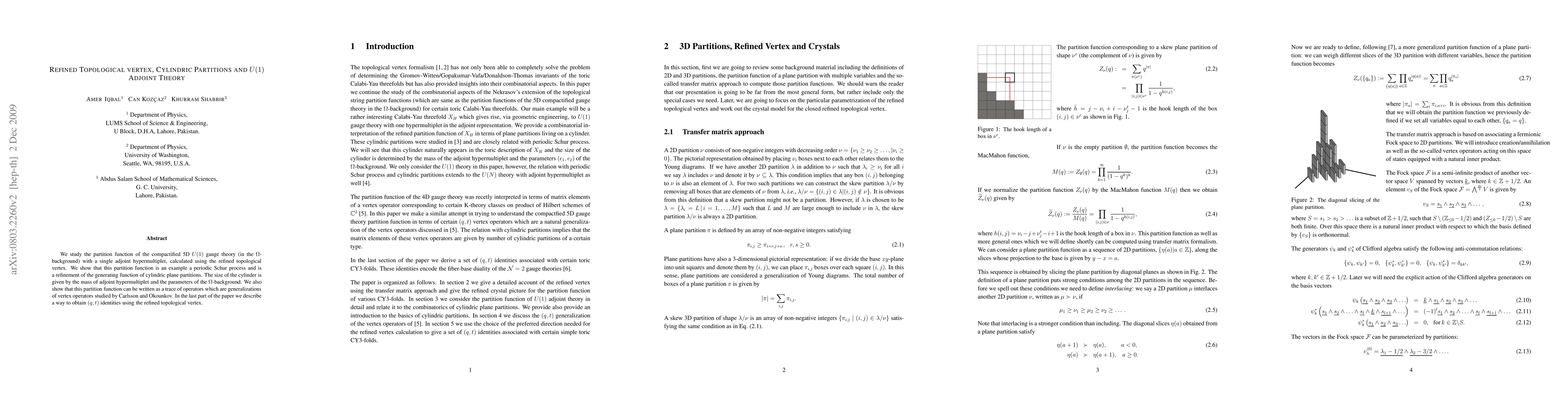 This paper explores the partition function of a 5D U(1) gauge theory compactified in the Omega-background with a single adjoint hypermultiplet, employing the refined topological vertex. It demonstrates that the partition function is a refined generating function for cylindric plane partitions and can be expressed as a trace of generalized vertex operators.